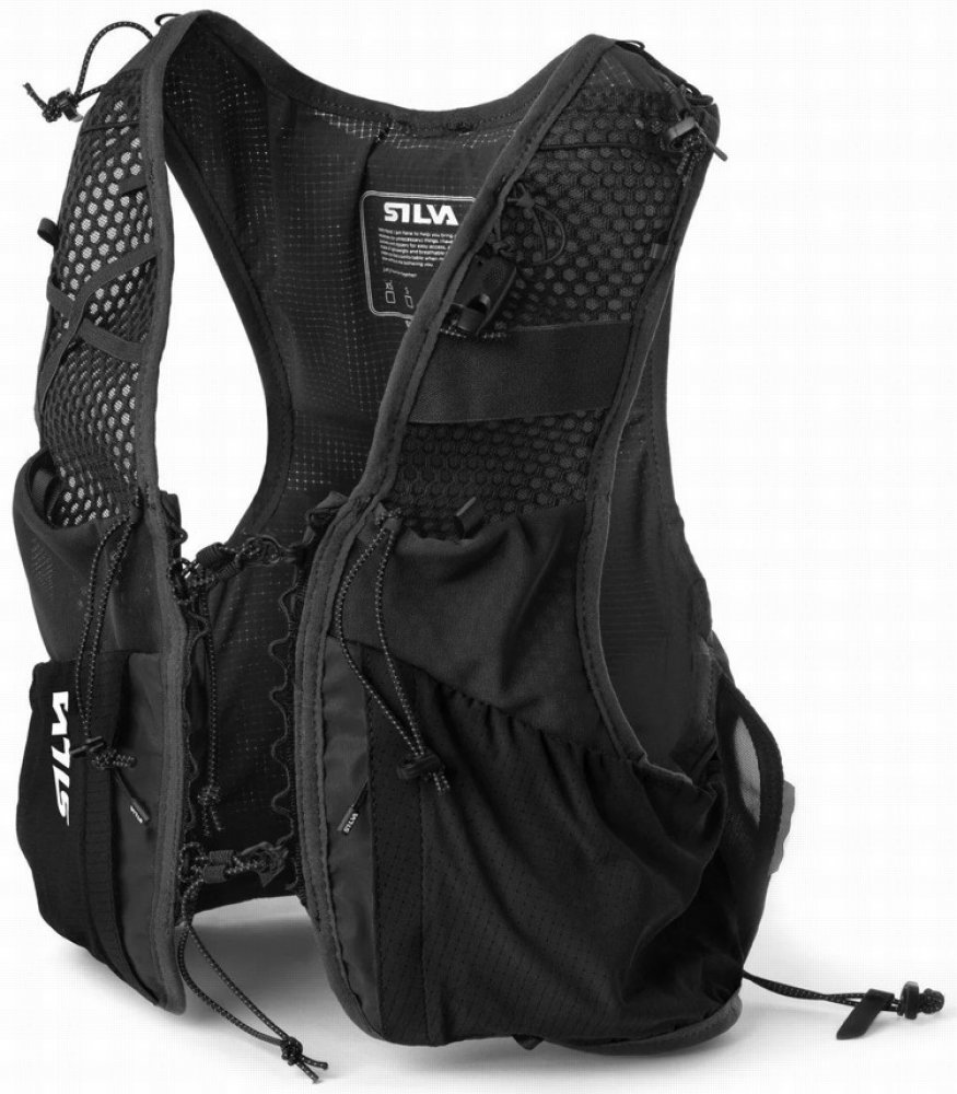Zádová část má dvě kapsy - spodní podélná a hlavní zádová kapsa, která má dva vývody na kabel čelovky nebo hadici od hydratačního vaku. Pro fixaci baterie je určena malá kapsa uvnitř. Hole lze připevnit pomocí pružných regulovatelných poutek, nebo je umístit do vaku Silva Quiver, který umožňuje jednodušší odnímání holí z vesty při závodech (vak není součástí).
