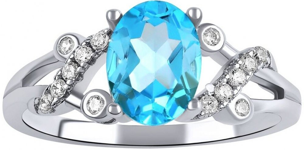 Stříbrný prsten je krásně dekorován přírodním modrým Topazem a čirými zirkony.