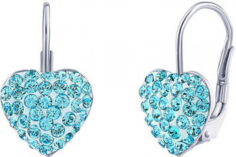 SILVEGO stříbrné náušnice srdce světle modré (akvamarínové) se Swarovski® Crystals.
