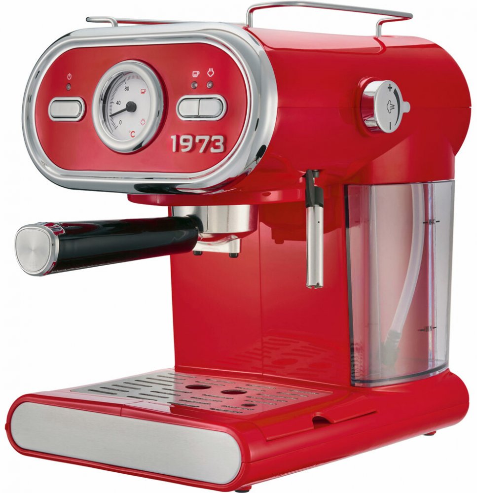 Silvercrest ® Retro espresso kávovar 1973 Semc 1100 A1 Vlastnosti Pákový systém 2 sítka na 1 nebo 2 šálky Vysoce výkonné čerpadlo s tlakem 15 bar pro dokonalou krémovou pěnu a výrazné aroma Výkyvná vysokotlaká parní tryska 2 v 1: výstup horké vody a tryska pro napěnění mléka Odnímatelná nádržka na vodu užitný objem: cca 1 l Automatické vypínání a kontrolka provozu Vyjímatelná odkapávací miska s ukazatelem hladiny vody a vyjímatelnou odkapávací mřížkou Včetně kávové lžičky 2 v 1 s pěchovadlem Délka síťového kabelu: cca 100 cm Charakteristika produktu tabletd Příkon: 1100 W Objem nádržky na vodu: cca 1,15 L Objem zásobníku na zrna: není uvedeno Objem zásobníku na kávovou sedlinu: není uvedeno Barva: červená Tlak čerpadla: 15 bar Kávový systém: se systémem pákového portafiltru Mléčný systém: s pěnidlem na mléko Mlýnek: není uvedeno Teplota kávy: není uvedeno Teplota horké vody: není uvedeno Displej: s automatickým vypínáním a kontrolkou provozu Zvláštnost: se 2 vložkami do sítka pro 1 nebo 2 šálky Rozsah dodávky: 1 x espresso kávovar; 1 x pákový portafiltr, 2 x sítko; 1 x lžička na kávový prášek s tamperem