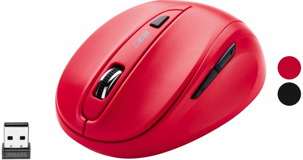 Silvercrest® Optická bezdrátová myš Snížený hluk při klikání Bezdrátová; USB nano přijímač Ergonomicky tvarovaná Optický senzor s volitelným rozlišením: 1 000, 1 500 nebo 2 000 dpi 5 programovatelných kláves + 1 speciální klávesa pro citlivost ukazatele myši Dosah až cca 5 m bezdrátová technologie s 2,4 GHz Včetně 2x baterie AA LR6 Plug & Play – snadné připojení přes USB port bez složité instalace...