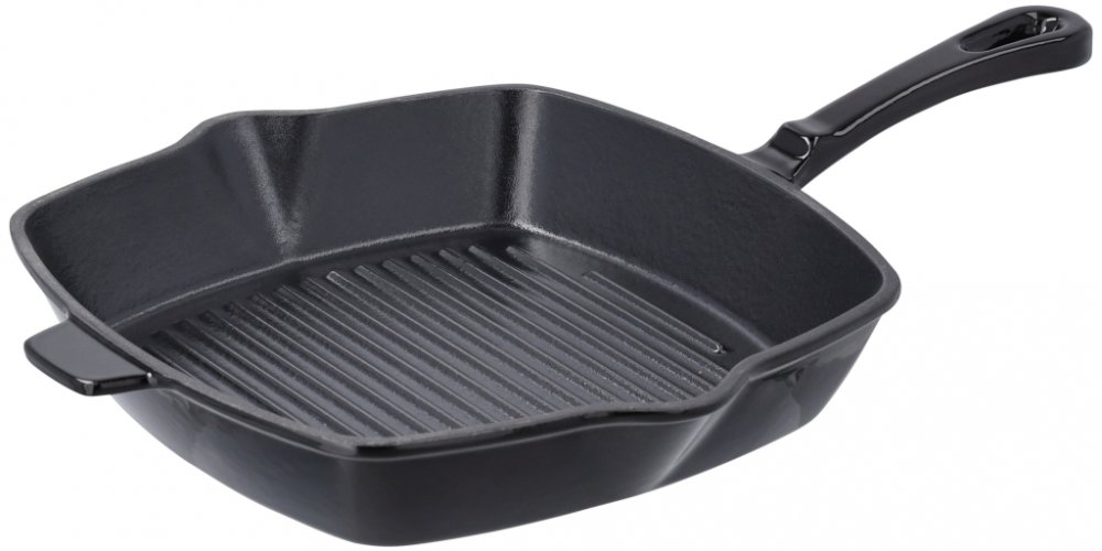 Silvercrest ® Litinová grilovací pánev; Ø 24 cm Vlastnosti Ideální pro smažení; vaření a servírování Nenáročná na údržbu a odolné smaltování uvnitř i venku pro dlouhou životnost Drážkovaná plocha pro efekt grilování Ergonomická rukojeť a úchytka pro lepší manipulaci Výlevky na obou stranách pro nalévání bez odkapávání - vhodná pro praváky i leváky Odolnost při ohřevu v troubě do 240 °C Vhodná pro všechny druhy plotýnek – včetně indukčních Charakteristika produktu tabletd Průměr: cca 24 cm Povrchová úprava: smaltovaná úprava Vhodná pro: všechny typy varných desek – včetně indukce Tloušťka dna: cca 4,3 mm Materiál: litina; smaltovaná Materiál rukojeti: rukojeť z litinového tyčového držadla Vhodná do myčky: ne Hmotnost: cca 2.800 g