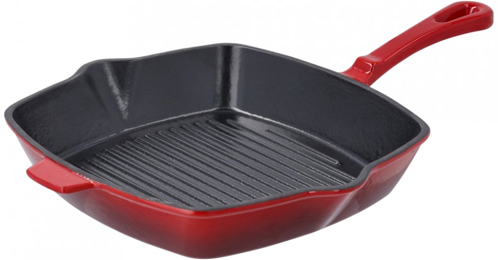 Silvercrest ® Litinová grilovací pánev; Ø 24 cm Vlastnosti Ideální pro smažení; vaření a servírování Nenáročná na údržbu a odolné smaltování uvnitř i venku pro dlouhou životnost Drážkovaná plocha pro efekt grilování Ergonomická rukojeť a úchytka pro lepší manipulaci Výlevky na obou stranách pro nalévání bez odkapávání - vhodná pro praváky i leváky Odolnost při ohřevu v troubě do 240 °C Vhodná pro všechny druhy plotýnek – včetně indukčních Charakteristika produktu tabletd Průměr: cca 24 cm Povrchová úprava: smaltovaná úprava Vhodná pro: všechny typy varných desek – včetně indukce Tloušťka dna: cca 4,3 mm Materiál: litina; smaltovaná Materiál rukojeti: rukojeť z litinového tyčového držadla Vhodná do myčky: ne Hmotnost: cca 2.800 g