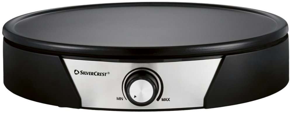 Silvercrest® Palačinkovač XXL SCM 1500 G1 Vlastnosti Na tenké palačinky Odnímatelná deska na pečení s kvalitní nepřilnavou povrchovou úpravou od firmy Ilag® Keramika Ceralon bez Pfas s nepřilnavou povrchovou úpravou Ilag Mimořádně dobré nepřilnavé vlastnosti Vysoká odolnost proti poškrábání Plynule nastavitelný termostat s kontrolkou Integrované navíjení kabelu Stabilní díky protiskluzovým nožičkám Včetně roztírače těsta, obracečky a návrhů receptů v návodu k použití Příkon: 1 500 W, 220–240 V, 50–60 Hz Charakteristika produktu tabletd Průměr: cca 37 cm pečicí plocha Příkon: 1 500 W Nastavení teploty: plynulé Materiál: kov; plast, keramika Vhodný do myčky na nádobí: deska na pečení; roztírač těsta a obracečka na palačinky jsou vhodné do myčky na nádobí Povrchová úprava: bez Pfas s nepřilnavou povrchovou úpravou Ilag® Rozměry: cca 38,4 x 37,5 x 9,3 cm Ø x Š x V, délka síťového kabelu: cca 150 cm Hmotnost: cca 2,28 kg Obsah balení: 1x palačinkovač Xxl, 1x roztírač těsta, 1x obracečka na palačinky