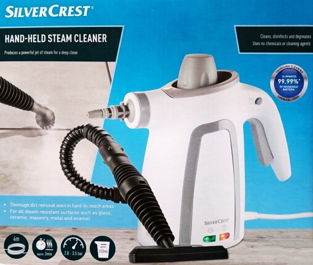 SILVERCREST® Ruční parní čistič SDR 1050 D1 Důkladné čištění díky vysokému parnímu tlaku Jednoduchá obsluha Funkce čištění, dezinfikování a odmašťování Na lesknoucí se armatury, umyvadla, zrcadla, dlaždice a ráfky kol Vhodný také na oživení textilií, čalounění nebo oděvů Vhodný na sklo, keramiku, kámen, kov nebo smalt Čistí těžko dostupných míst a důkladné rozpouštění nečistot Při důkladném čištěn...
