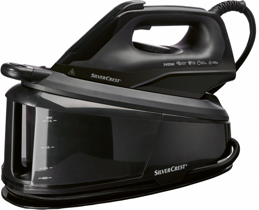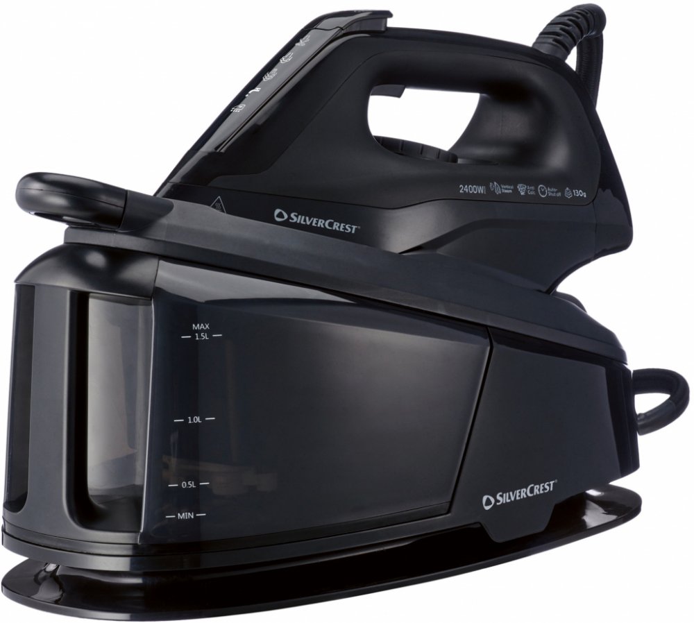 Silvercrest ® Napařovací žehlička s parní stanicí Sdsb 2400 A1 Vlastnosti Výkonných max. 2 400 W pro dokonalé výsledky žehlení Kvalitní žehlicí plocha s keramickou povrchovou úpravou pro optimální skluz Variabilně nastavitelná trvalá pára vario pára až do cca 130 g/min zajistí vždy správné množství páry Nastavitelné teploty pro hedvábí a syntetické tkaniny, vlnu a také bavlnu a len Silný parní ráz...