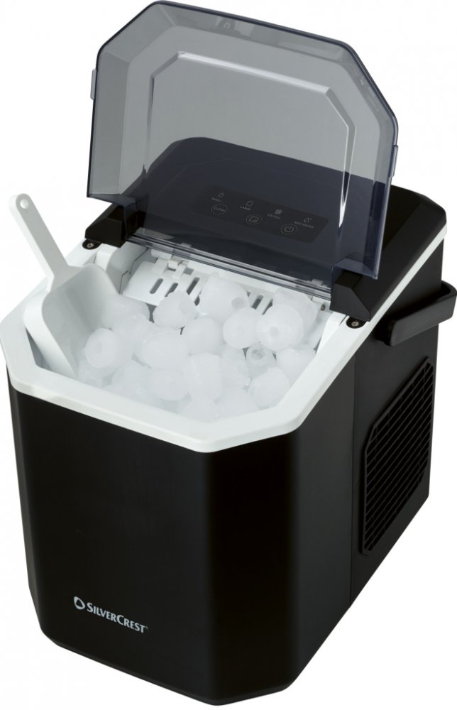 Silvercrest ® Výrobník ledu Semk 105 C1 Vlastnosti Hotové kostky ledu během několika minut - bez předchozího chlazení Volitelné dvě velikosti kostek ledu Integrovaná nádržka na vodu o objemu 1,3 l – není nutná přípojka vody Vyjímatelná nádoba na cca 600 g kostek ledu Jednoduché ovládání pomocí dotykového ovládacího panelu Funkce samočištění Včetně lopatky na led Délka síťového kabelu: cca 180 cm v...