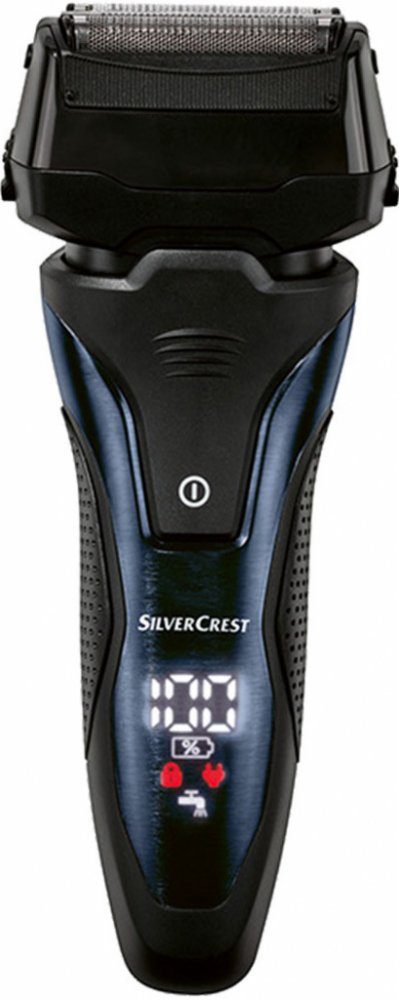 Silvercrest ® Personal Care Elektrický holicí strojek Systém tří čepelí z dvojité holicí fólie na precizní holení Optimálně přizpůsobený tvar pro příjemně jemné a důkladné holení Výsuvný zastřihovač vousů a kotlet Odnímatelná holicí hlava - na čištění pod tekoucí vodou Ergonomicky tvarované tělo s měkkým povrchem LED displej s ukazatelem kontroly nabití (1 - 100 %) Praktická funkce uzamčení; např....