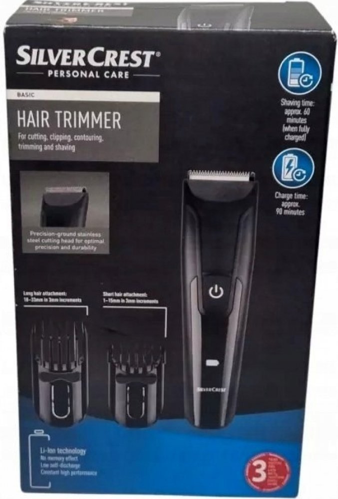 Silvercrest ® Personal Care Zastřihovač vlasů a vousů Shca 3.7 A1 Na stříhání; zkracování; konturování; prostřihávání a holení Přesně broušená střihací sada z nerezové oceli pro optimální přesnost střihu a dlouhou životnost Kompaktní vzhled a jednoduchá manipulace 2 hřebenové nástavce: Nástavec na krátké vlasy: 1 - 15 mm po 3 mm Nástavec na dlouhé vlasy: 18 - 33 mm po 3 mm Ergonomická rukojeť pro ...