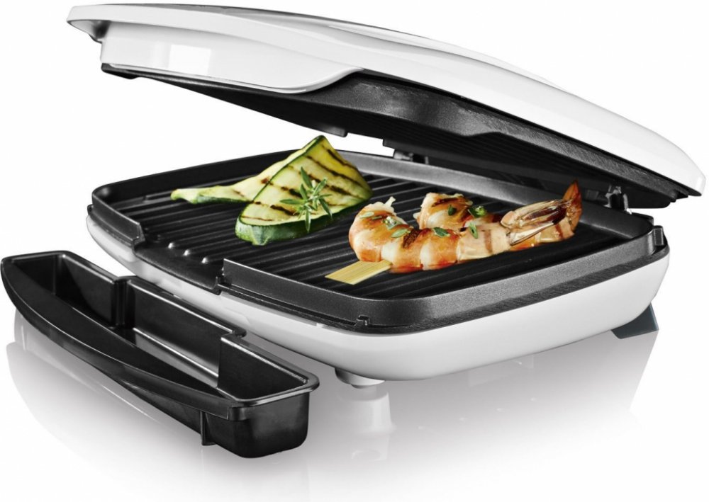 SILVERCREST Kontaktní gril SKG 1000 B2 Ideální na grilování masa, ryb nebo zeleniny Kvalitní nepřilnavá povrchová úprava od firmy ILAG® Rychlé zahřátí – cca 2 minuty Slouží k přípravě sandvičů nebo panini Odtok tuku a vývaru včetně separátní záchytné nádoby Kontrolka pečení – červená a zelená indikační kontrolka Technické údaje Příkon: 1 000 W Délka síťového kabelu: cca 1 m Materiál Plast, hliník ...