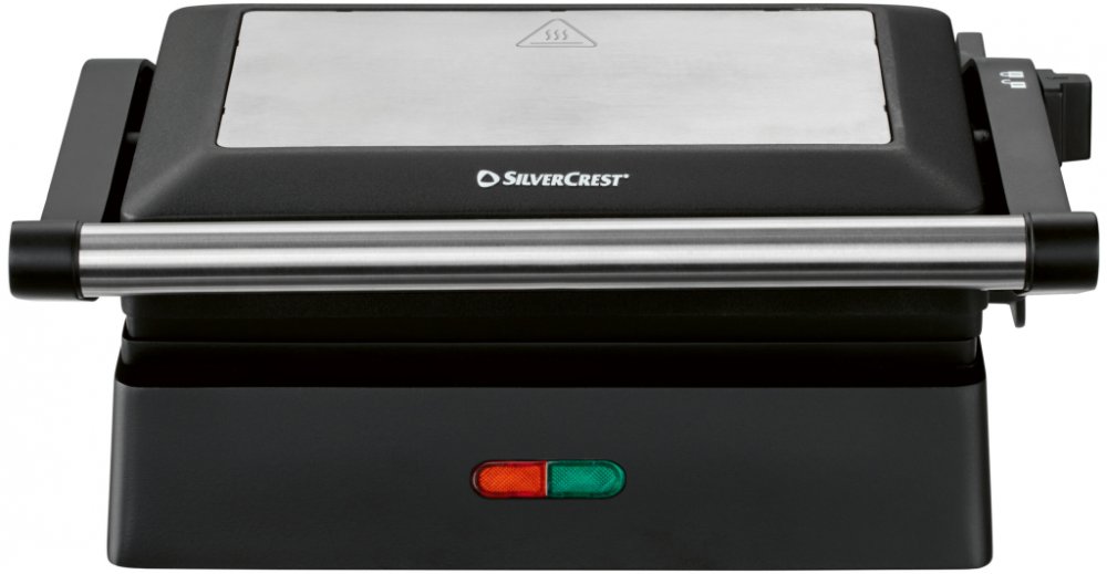 Silvercrest® Mini kontaktní gril SKM 1000 B1 Vlastnosti Pro grilování masa, ryb, zeleniny atd. s nízkým obsahem tuku Kvalitní nepřilnavá povrchová úprava od Ilag®: Vynikající nepřilnavé vlastnosti Vysoká odolnost proti poškrábání Rychlá doba ohřevu – cca 2 minuty Pro přípravu toustů a chleba panini Lze použít i jako stolní gril (lze otevřít o 180°) Vyjímatelná miska na odkapávání šťávy Červená a zelená provozní kontrolka Grilovací plocha: cca 23 x 14,5 cm (D x Š) Charakteristika produktu ;} Příkon: 1 000 W Materiál tělesa: plast Materiál grilovací plochy: tlakově litý hliník Nepřilnavý povrch: ano Grilovací plocha: cca 23 x 14,5 cm (D x Š) Displej: kontrolka Vhodné do myčky nádobí: pouze miska na odkapávání šťávy Rozměry: cca 28,3 x 22,8 x 12 cm (D x Š x V) Hmotnost: cca 1,6 kg Délka síťového kabelu: cca 1 m