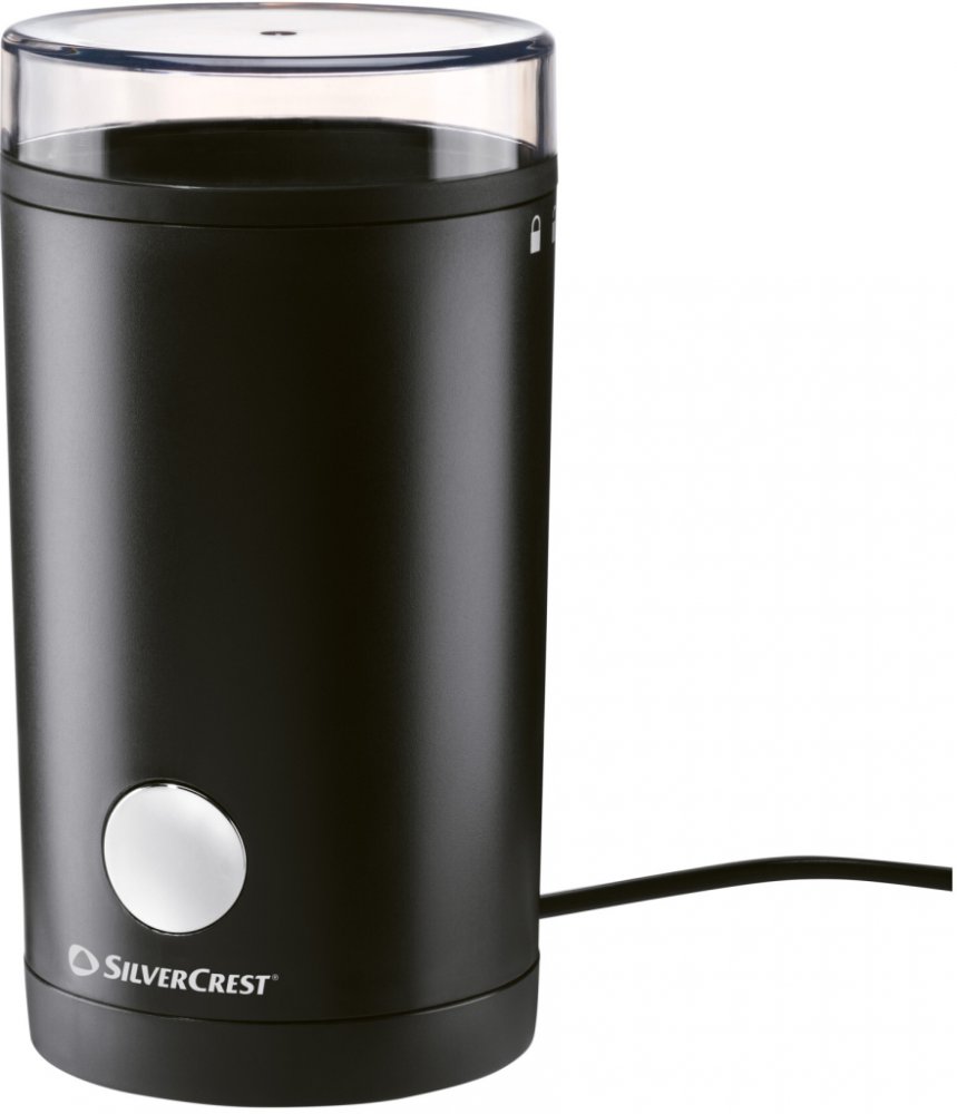 Silvercrest® Elektrický mlýnek na kávu Skme 180 C2 Vlastnosti Čerstvě namletá káva pouhým stisknutím tlačítka Mlecí ústrojí z vysoce kvalitní nerezové oceli Na cca 8–9 šálků kávy Průhledné víko pro kontrolu stupně mletí Včetně čisticího štětečku Užitný objem: až 70 g zrnkové kávy Příkon: 180 W Délka síťového kabelu: cca 85 cm Provoz je možný pouze s nasazeným víkem Charakteristika produktu ;} Materiál: nerezová ocel, plast Rozměry: cca 9,3 x 17,4 cm (Ø x V) Hmotnost: cca 467,3 g