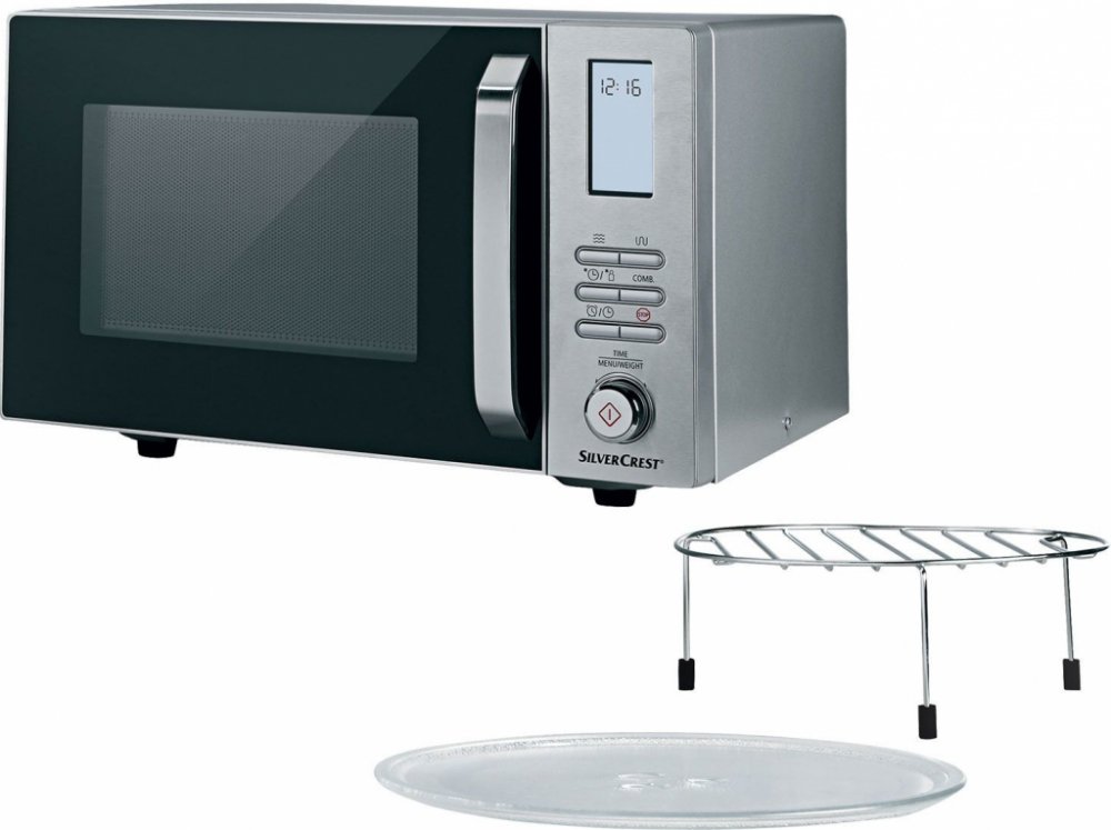 10 automatických programů a funkce grilu Mnohostranně použitelná – ohřívání, vaření, rozmrazení, grilování a přepékání 11 výkonnostních stupňů: 8 stupňů mikrovlnné trouby, 1 grilovací výkonnostní stupeň, 2 kombinované výkonnostní stupně (mikrovlnná trouba a gril) Jednoduché ovládání pomocí otočného spínače pro nastavení času a hmotnosti Funkce rozmrazování dle hmotnosti, rychlého startu a dětské pojistky Multifunkční LCD Ukazatel času (24 hodin), předvolba času zapnutí, signál po ukončeném vaření a kuchyňská minutka s nastavením až na 95 minut Včetně otočného skleněného talíře a stojánku na grilování Automatické programy: nápoje, maso, ohřívání, rýže, nudle, ryba, drůbež, brambory, popcorn, zelenina Technické údaje Objem vnitřního prostoru: cca 20 l Příkon: mikrovlnná trouba: 800 W; gril: 1 000 W Rozměry cca 46,4 x 28,5 x 37,8 cm Návod k použití Záruka