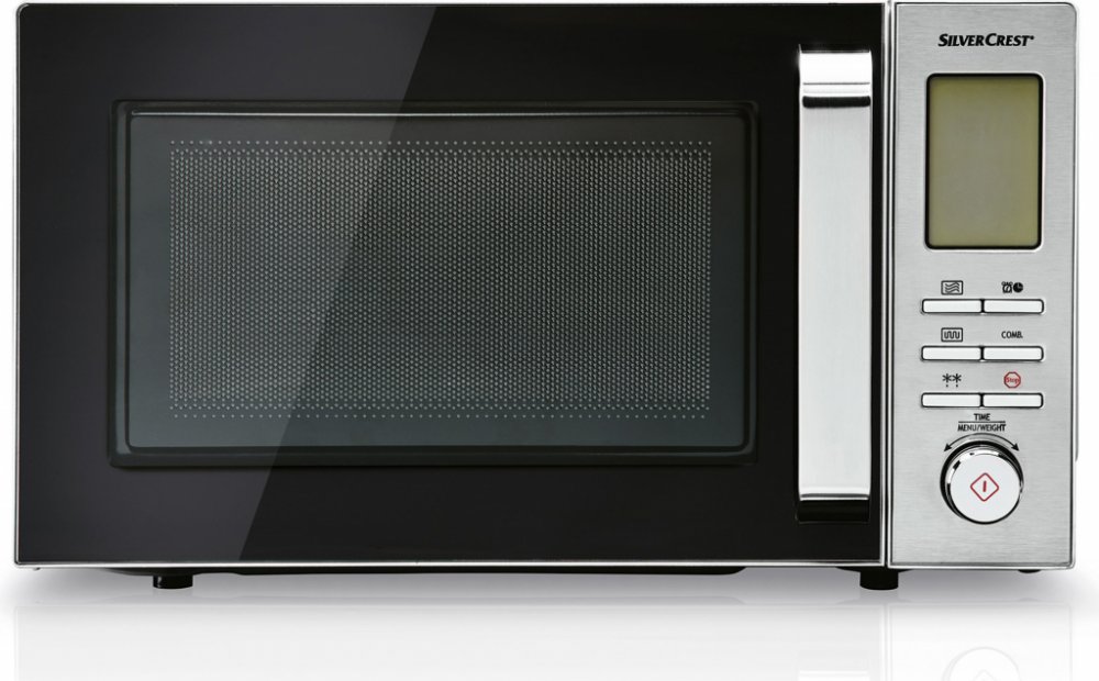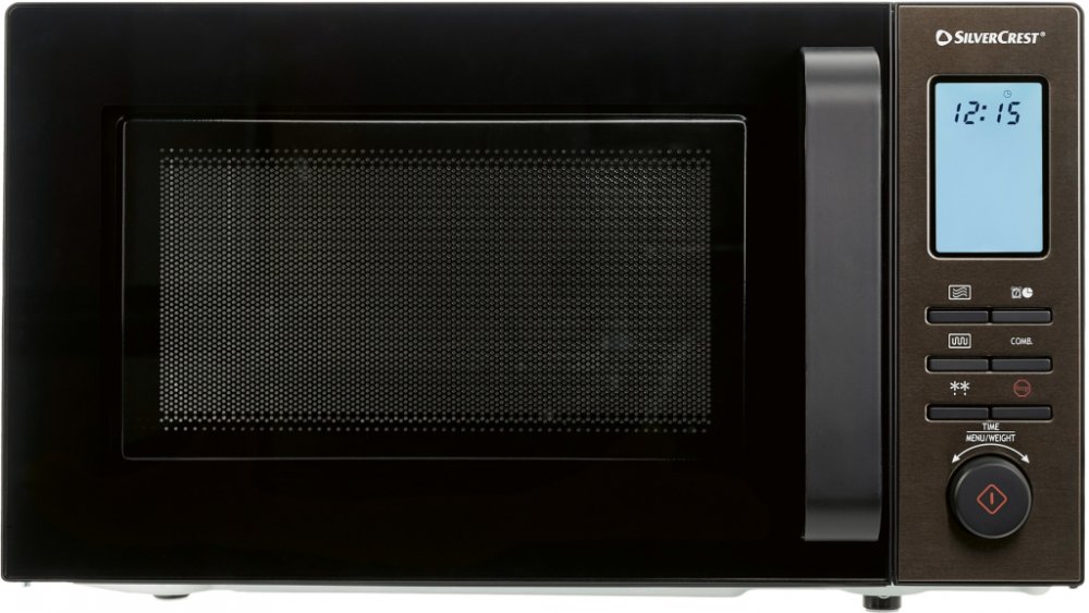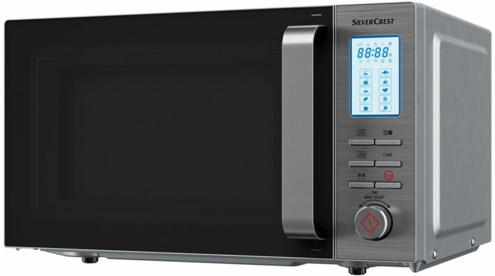 SILVERCREST Mikrovlnná trouba SMW 800 F2, stříbrná Gril a 10 praktických automatických programů Víceúčelová – na ohřívání, vaření, rozmrazování, grilování a gratinování 11 výkonnostních stupňů: 8 stupňů výkonu mikrovlnné trouby (100–800 W), 1 výkonnostní stupeň pro gril 2 kombi stupně (mikrovlnná trouba a gril) Komfortní ovládání jednou rukou – otočným regulátorem k nastavení a potvrzení Funkce rozmrazení dle hmotnosti a času, funkce rychlého startu a dětská pojistka Multifunkční LCD displej Digitální hodiny s režimem 12 nebo 24 hodin, předvolba času zapnutí, signál po ukončeném vaření a kuchyňský časovač s nastavením až na 95 minut Včetně skleněného otočného talíře a stojánku na grilování z nerezové oceli Automatické programy: těstoviny, ryby, maso, ohřívání, rýže, kuře, brambory, popcorn, zelenina, nápoje Objem vnitřního prostoru: cca 20 l Technické údaje Příkon mikrovlnné trouby: 1 200 W Výstupní výkon: 800 W Příkon grilu: 1 000 W Materiál Ocel, sklo, silikon Rozměry Mikrovlnná trouba: cca 45,2 x 26,2 x 39,7 cm (Š x V H) Grilovací rošt: cca 19 x 8,2 cm (Ø x V) Skleněná deska: cca Ø 24,5 cm Otočná vložka: cca Ø 15,8 cm Délka síťového kabelu: cca 1 m Hmotnost Mikrovlnná trouba: cca 11,85 kg Grilovací rošt: cca 81 g Skleněná deska: cca 700 g Otočná vložka: cca 17 g