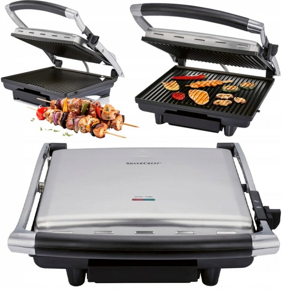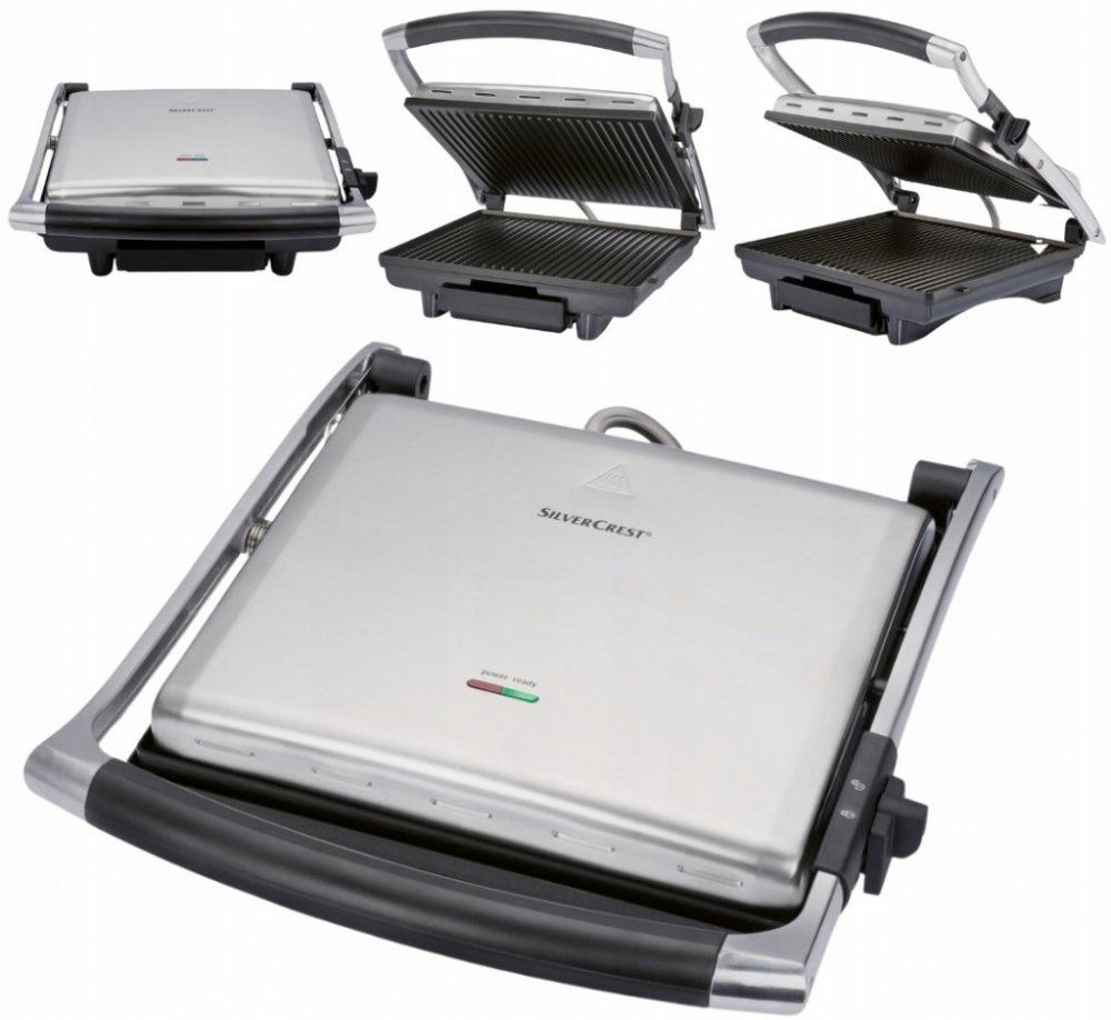SilverCrest kontaktní hliníkové 2000 W 2 3.3 kg stříbrné 29.3 cm 26.3 cm 12 cm 38.3 cm 33.9 cm