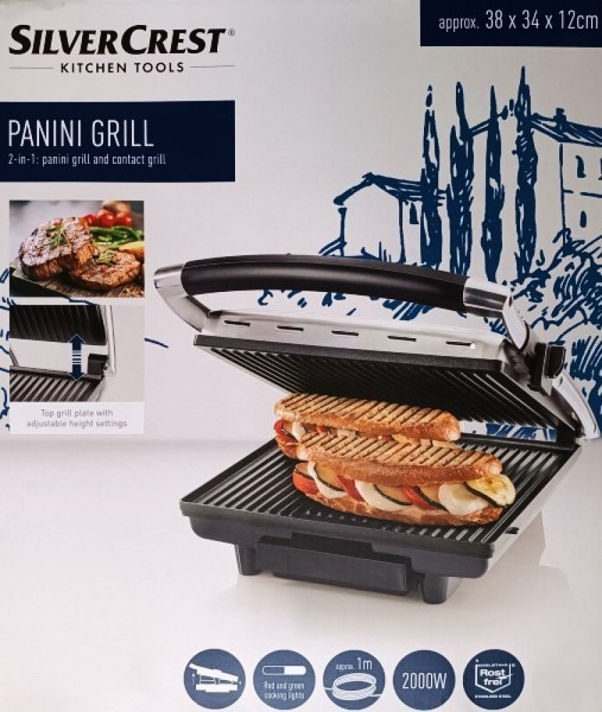 ELEKTRICKÝ SENDVIČOVAČ TOUSTOVAČ PANINI SILVERCREST SPM 2000 E2