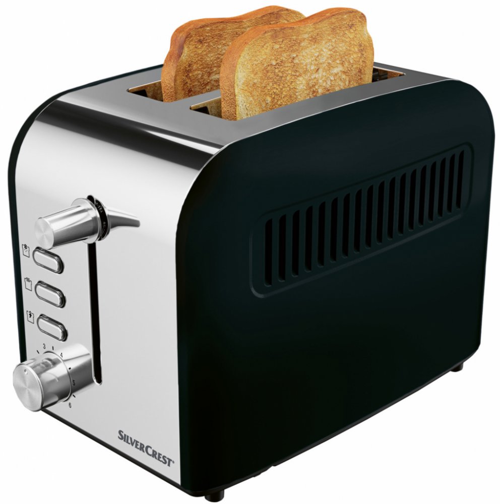 Silvercrest® Kitchen Tools Topinkovač Steb 920 A1 Leštěná čelní stěna 6 stupňů propečení: variabilní nastavení – pro optimální výsledky pečení Elektronická regulace opékání pro optimální výsledky pečení Variabilní centrování krajíce chleba pro rovnoměrné propečení Funkce rozmrazování pro současné rozmrazování a opékání Funkce ohřevu bez přídavného opékání Funkce Stop pro přerušení procesu opékání ...