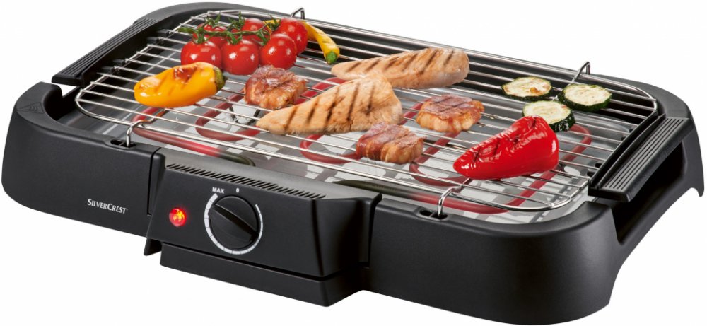Silvercrest® Kitchen Tools Elektrický stolní gril Stge 2000 B2 Vlastnosti Ideální pro zdravé grilování bez tuku Termostat s plynulým nastavením teploty a ochranou proti přehřátí Odnímatelný a výškově nastavitelný grilovací rošt z ušlechtilé oceli s plastovými úchyty Odnímatelný topný prvek Vyjímatelná záchytná mísa na kapající tuk S protiskluzovými nožkami Všechny díly; které přicházejí do styku s potravinami, neobsahují BPA Charakteristika produktu ;} Příkon: 2 000 W Vhodný pro: - Rozměry: Grilovací plocha: cca 41 x 24 cm; Délka síťového kabelu: cca 100 cm Materiál: Ušlechtilá ocel; plast, pozinkovaná ocel, silikon Hmotnost: cca 2 014,8 g (včetně příslušenství) Obsah balení: 1x Elektrický stolní gril