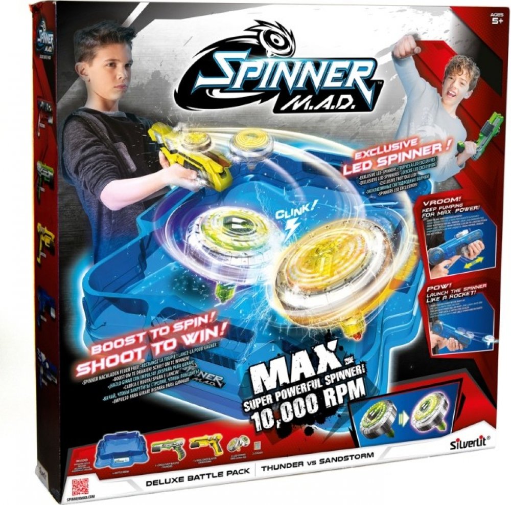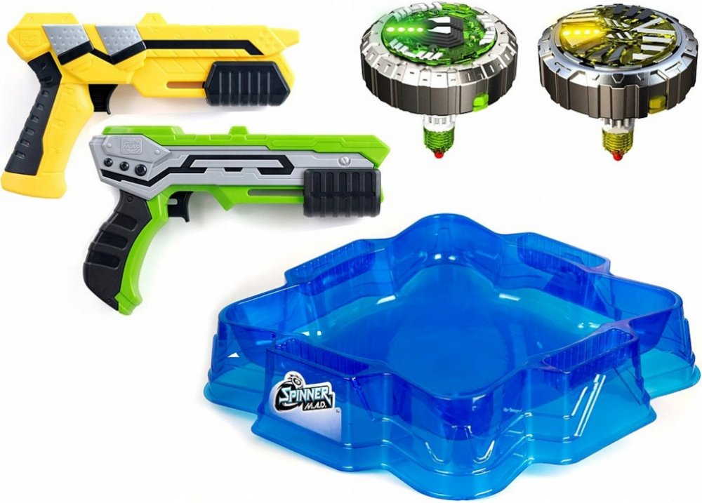Vystřelte pomocí pistole spiner přímo do arény, váš soupeř ať udělá totéž. Soutěžení vystřelením střely z blasteru zajistí nepředvídatelnou a jedinečnou hratelnost kovových spinnerů. Nesnažte se je uchopit, když se rychle otáčejí! To opravdu může bolet!
