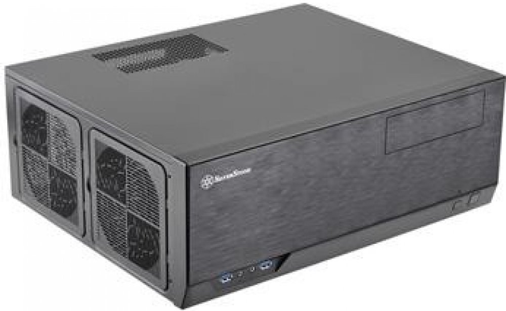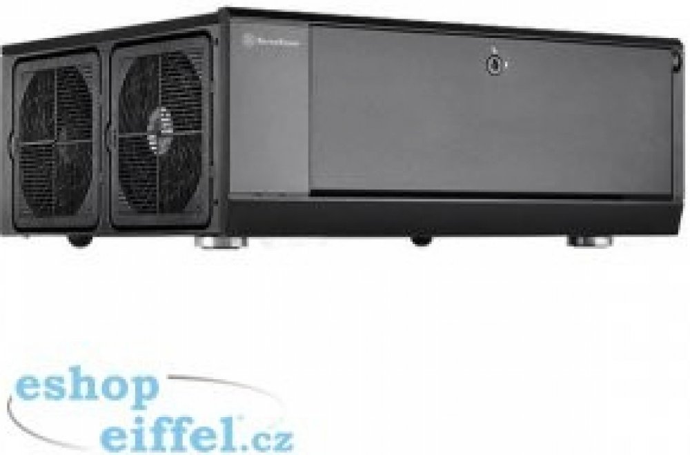 Silverstone GD10. Formát: HTPC, Model: PC, Barva: Černá. Pozice napájecího zdroje: Strana. Instalované boční ventilátory: 3x 120 mm, Podporované průměry bočních ventilátorů: 80,120 mm, Podporované průměry zadních ventilátorů: 80 mm. Podporované pevné velikosti disků: 2.5,3.5". Šířka: 442 mm, Hloubka: 362 mm, Výška: 171 mm