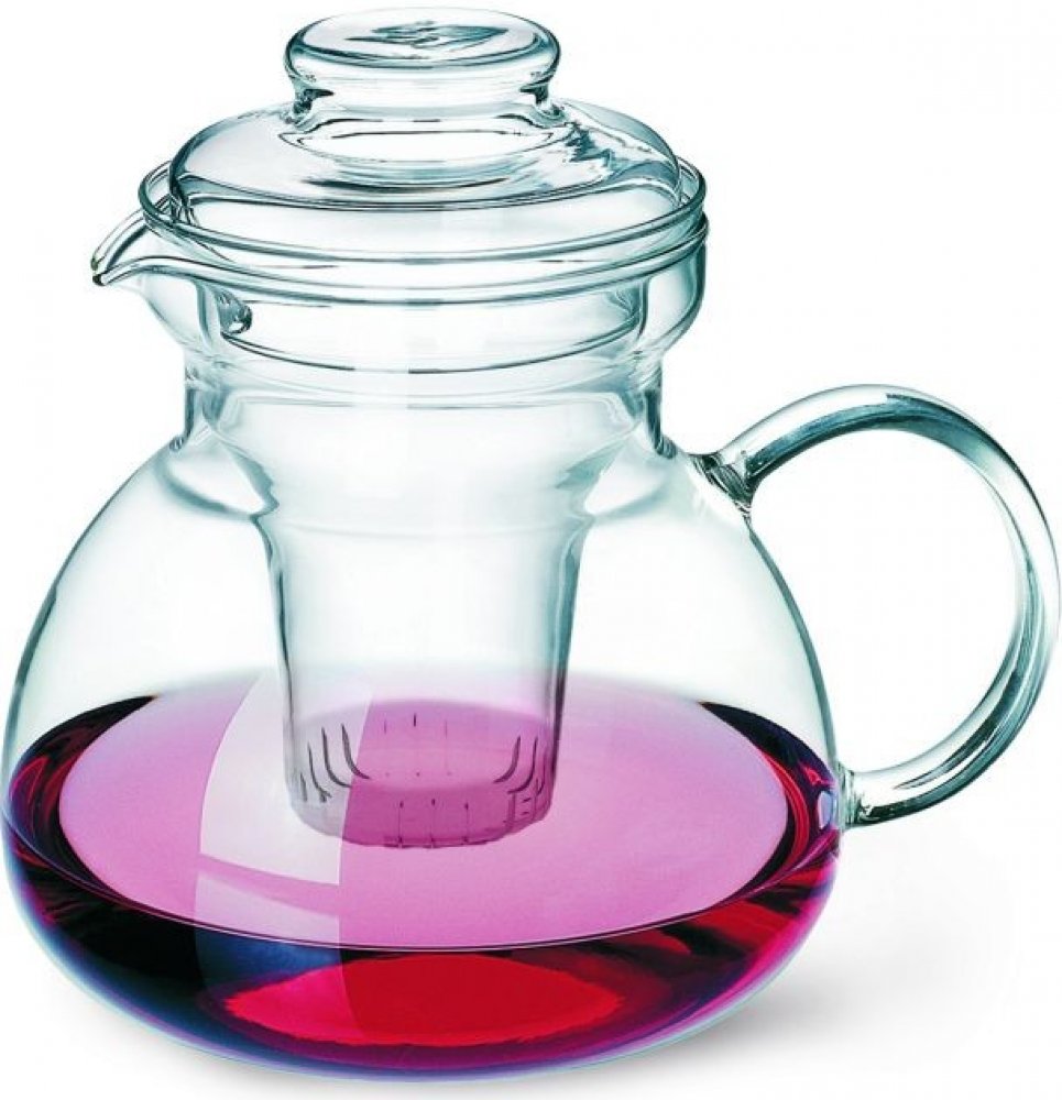 Celoskleněná louhovačka s cedítkem je vhodná na louhování čajů, pro udržení horké vody na nahřívačku s čajovou svíčkou nebo jako konvice na podávaní např. vázaných čajů.