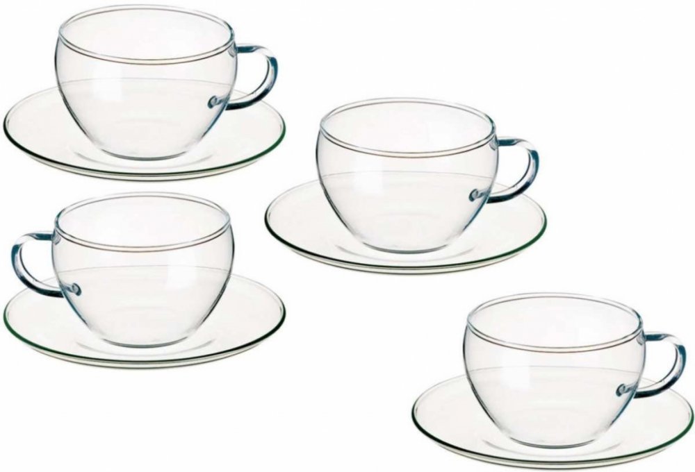 set 4 skleněných šálků s podšálky na čaj a kávu o objemu 4x 250 ml