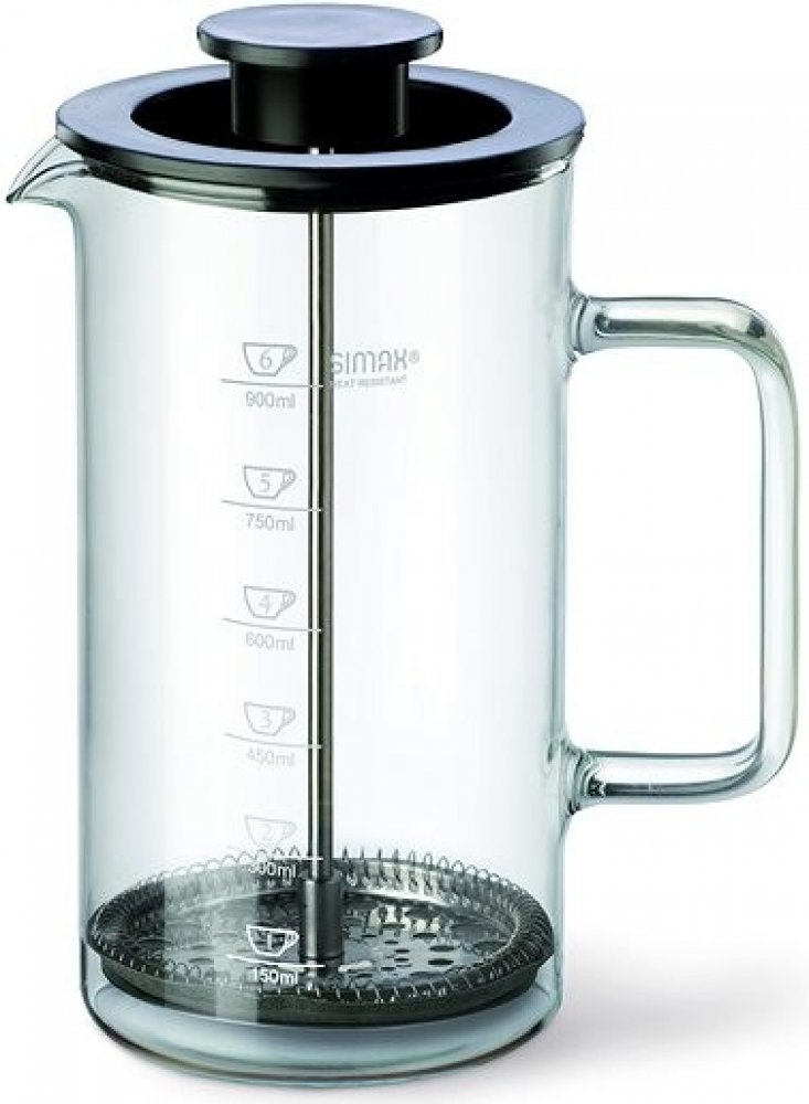 Rádi doma pijete kávu nebo čaj? Pak byste si mohli oblíbit french press SIMAX. S ním si zvládnete připravit váš oblíbený nápoj o objemu až 1000 ml. Jistě najdete využití i pro možnost umývání v myčce. Nemusíte tak plýtvat svůj čas a energii ručním mytím. Materiálem tohoto french pressu SIMAX je sklo. Frenchpress je jednoduché zařízení na přípravu kávy a jiných nápojů za pomoci posuvného sítka. Oblíbeným se stal díky možnosti nejrychlejší a přesto pohodlné přípravě kvalitní kávy v pohodlní domova. Podstatné parametry french pressu SIMAX French press 1l EXCLUSIVE French press patří do domácnosti každého milovníka kávy Objem: 1000 ml French press SIMAX se dá umývat v myčce Konstrukcí french pressu je sklo Ideální k přípravě filtrované kávy a sypaných, bylinkových či ovocných čajů Mezi výhody patří nízká pořizovací cena a snadná údržba Při přípravě nedojde ke snížení kvality kávy