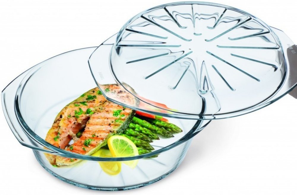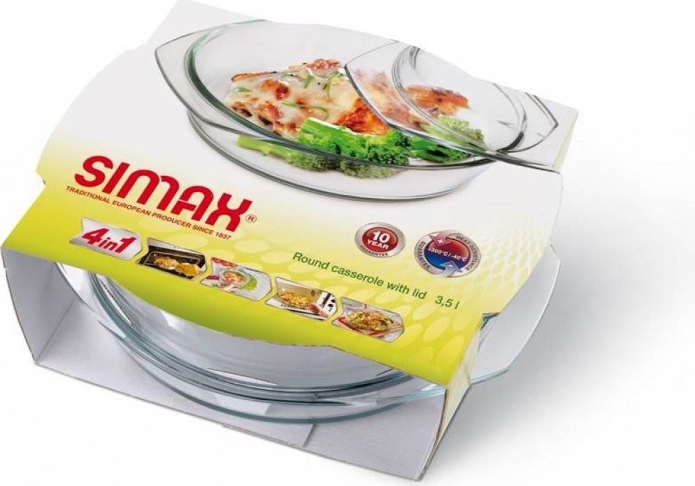 Pekáč kulatý s víkem se vyrábí z tvrdého borosilikátového skla, které je mechanicky i teplotně velmi odolné (-40°c až +300°C). Výhodou je dlouhá životnost, hygienická nezávadnost - je hladký a neporézní, snadno se udržuje - lze ho mýt v myčce na nádobí. Pekáč SIMAX je určen pro přípravu jídla ve všech druzích trub včetně mikrovlnných a horkovzdušných. Můžete použít pekáč s víkem, nebo oba jeho díl...