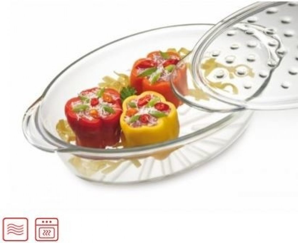 SIMAX - české sklo se 170letou tradicí. nabízí široký sortiment skleněných výrobků pro domácnost, průmysl i laboratoře. Výrobky SIMAX se vyznačují špičkovou kvalitou a precizním zpracováním v souladu se systémem ISO. Zákazníci oceňují dlouholetou tradici a především kreativitu a kvalitu. Díky vysokým standardům má sklo SIMAX vysokou odolnost vůči vysokým teplotám a chemikáliím; je hladké a neporézní, dokonale průhledné a odolné vůči korozi. Výrobky SIMAX jsou ekologické a velmi šetrné k životnímu prostředí. výrobky SIMAX lze mýt v myčce nádobí, používat v mikrovlnné troubě a jsou odolné vůči změnám teplot.Oválná žáruvzdorná mísa pro vaření/pečení bez tuku, zapékání pokrmů v jakémkoli typu troubyObjem: 3,6 l (3,00 + 0,6)Rozměry: 36,5 x 21 x 10,8 cm.