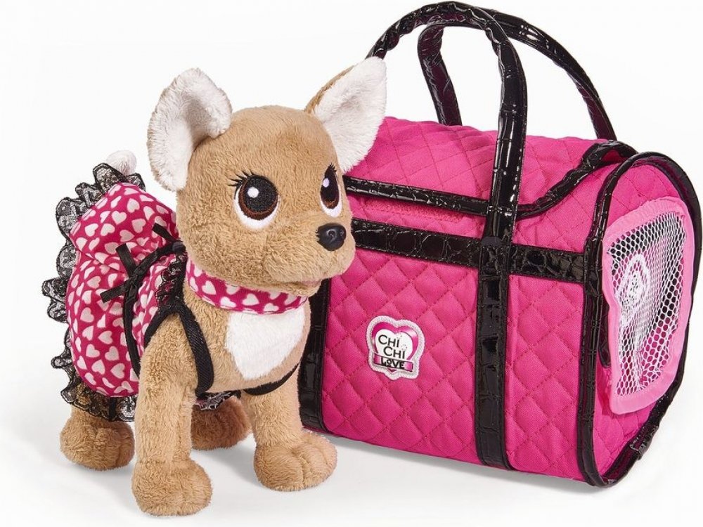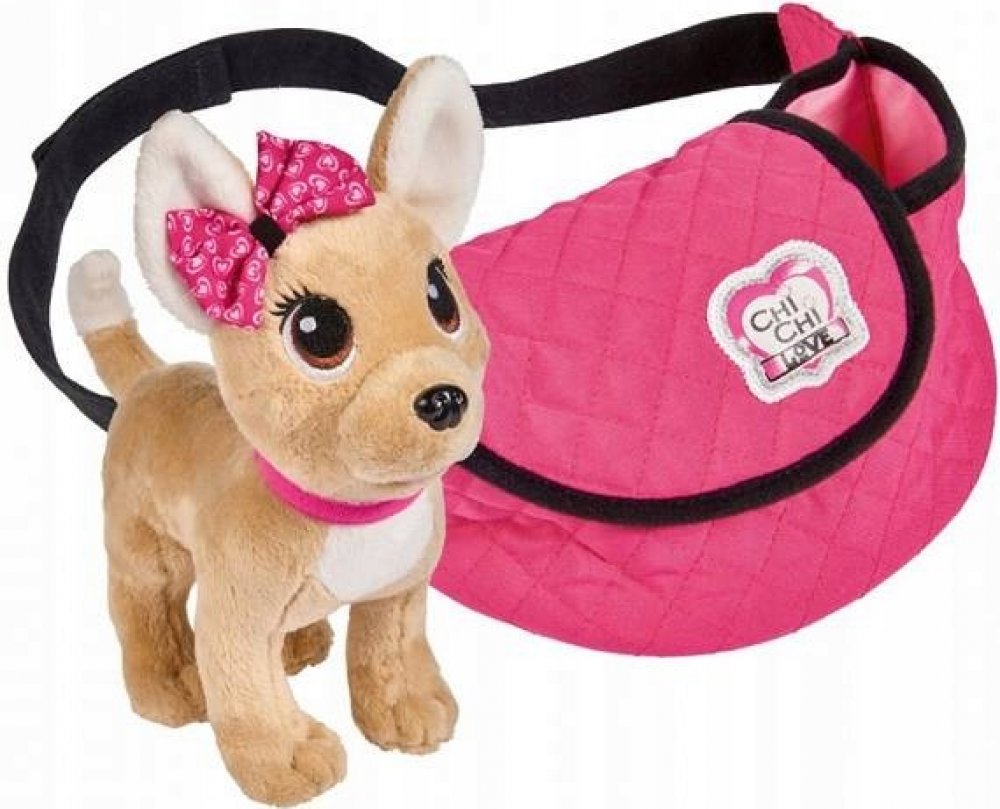 ChiChi Love plyšový pejsek s trendy taškou přes rameno s nastavitelnou délkou popruhu. Vezměte svého pejska na procházku. Můžete si zvolit, jak trendy tašku s pejskem budete nosit. Balení obsahuje: pejska, vodítko a lahvičku na pití