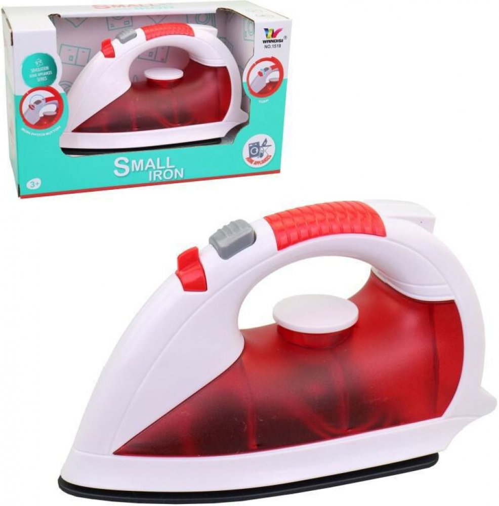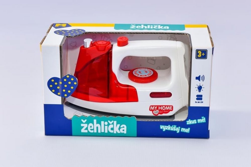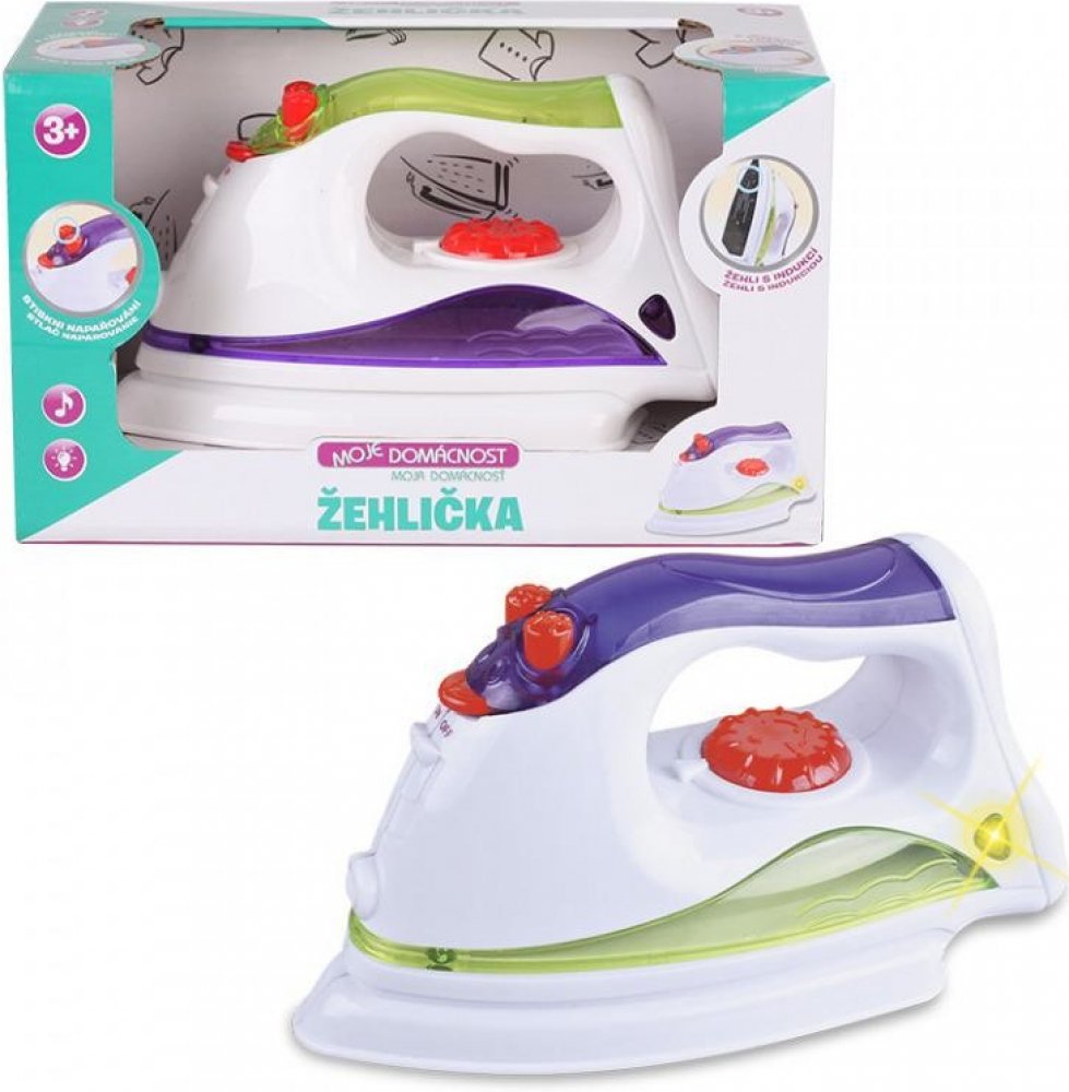 Žehlička má zvukové i světelné efekty. Hračka je dlouhá 17cm.
