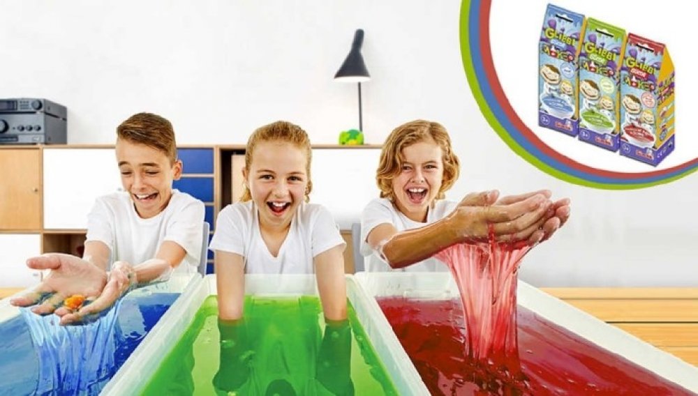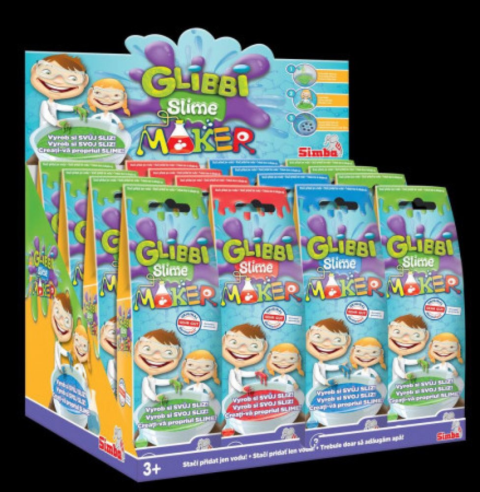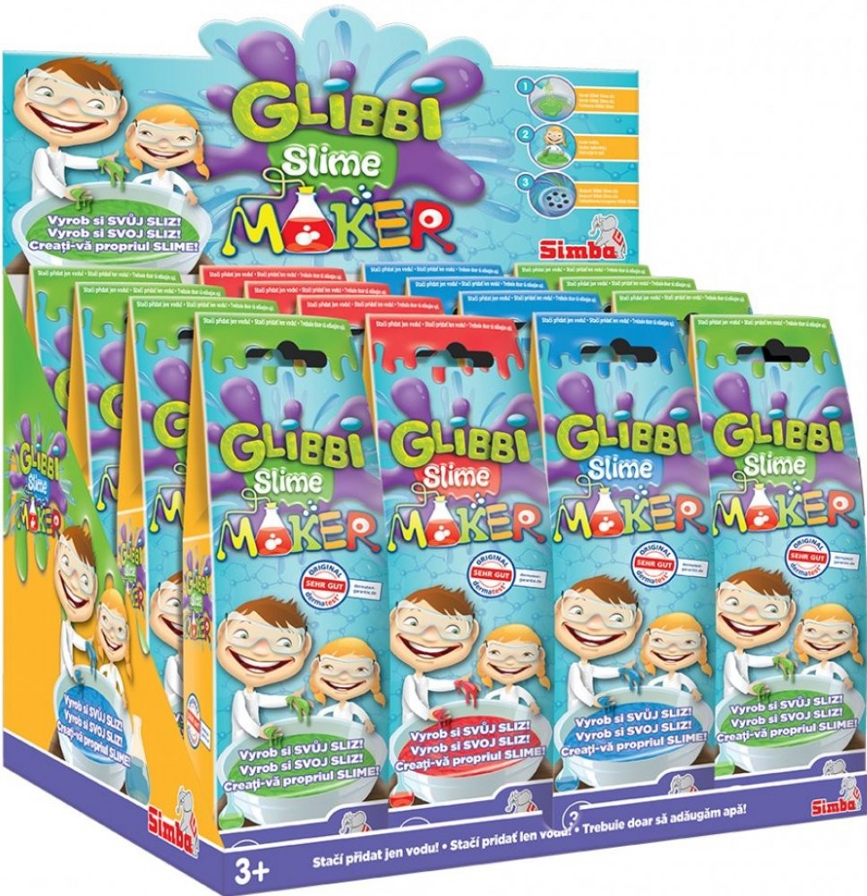Směs, ze které se po smíchání s vodou stane barevná hmota - zábavný sliz, který děti určitě pobaví. Voda proměňuje směs Glibbi ve hmotu, bílý pášek rozpouští hmotu.