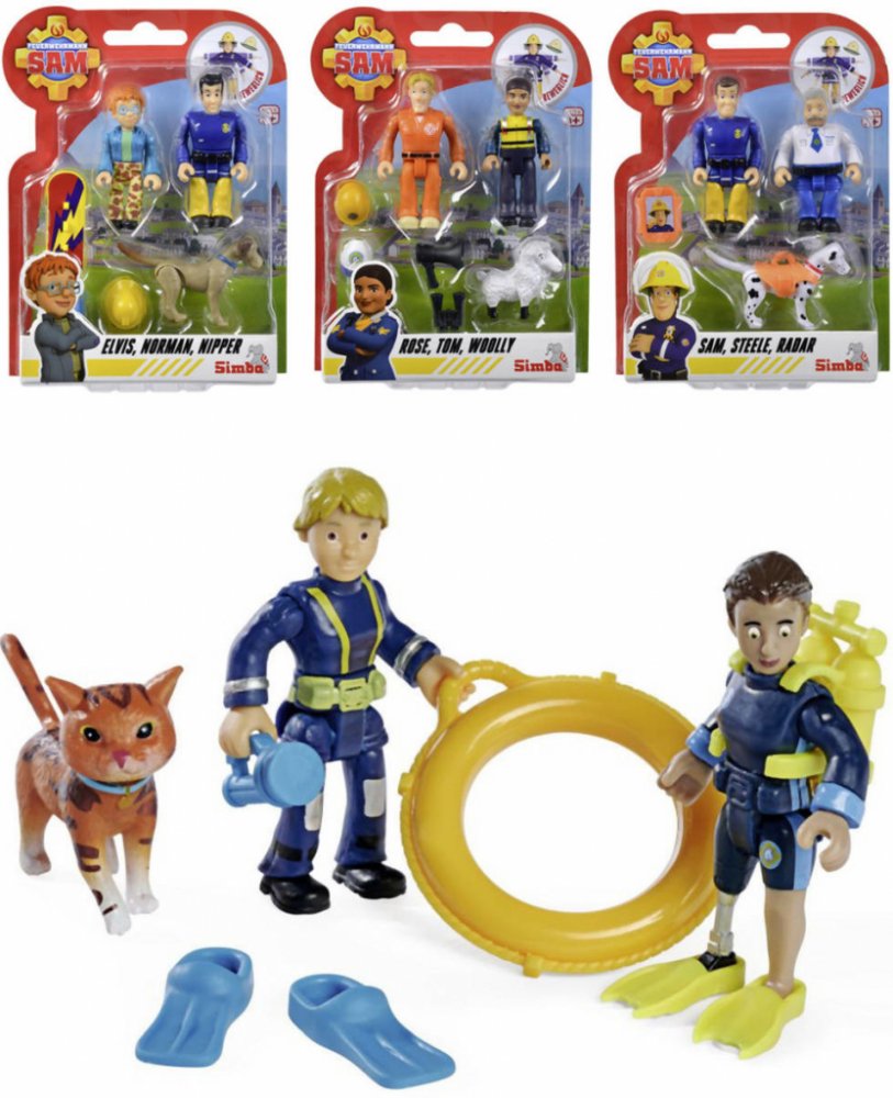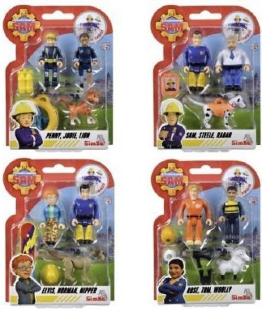 SIMBA Požárník Sam plastový herní set, součástí 2 figurky + zvířátko s doplňky, 4 druhy. Velikost postaviček 7,5cm.