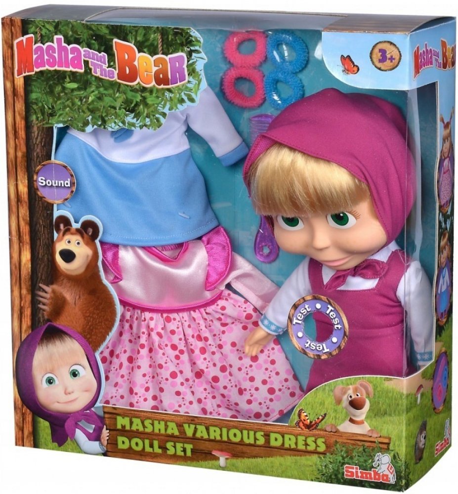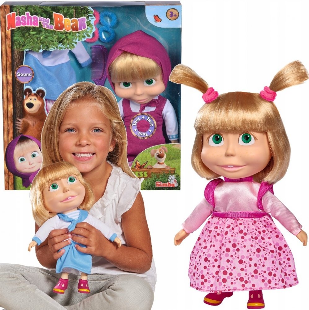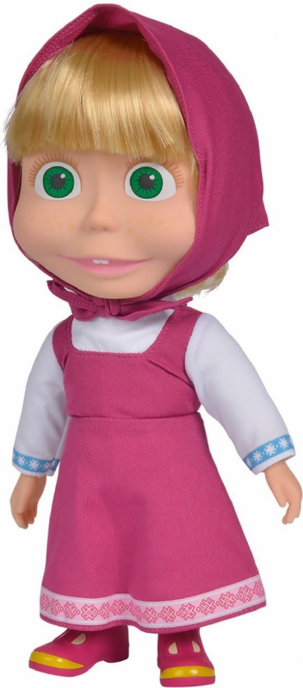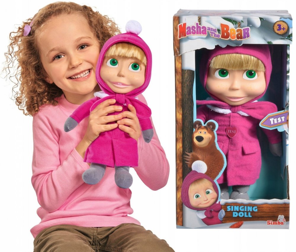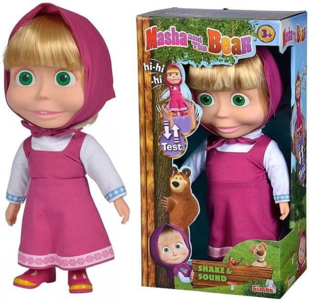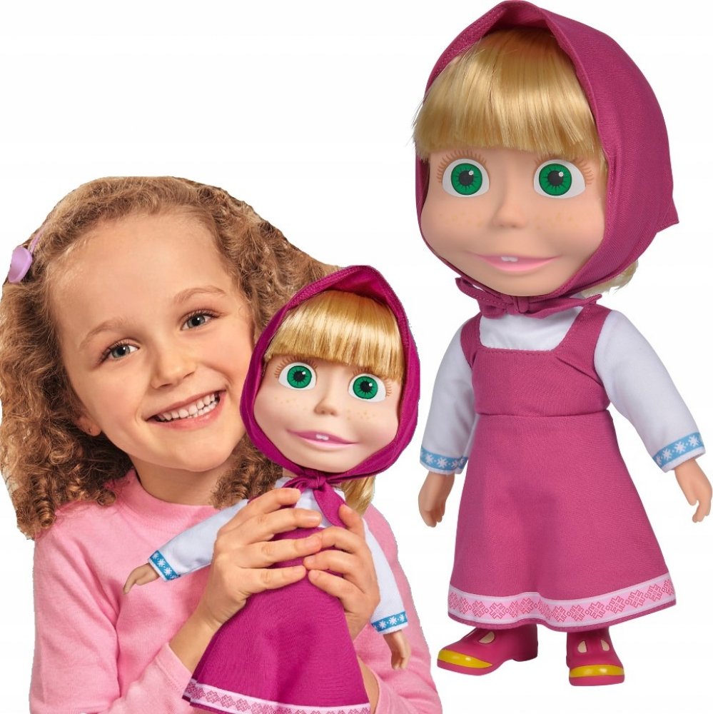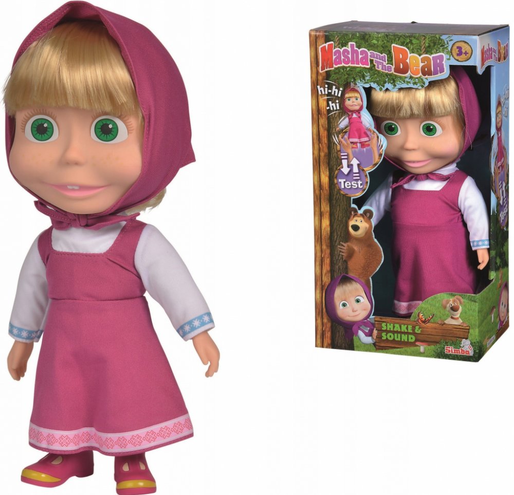 Panenka Máša z oblíbeného seriálu Máša a medvěd s měkkým tělíčkem. Když jí zatřeseš nebo ji vyhodíš do výšky, začne se smát. Hračka na baterie se zvukem.