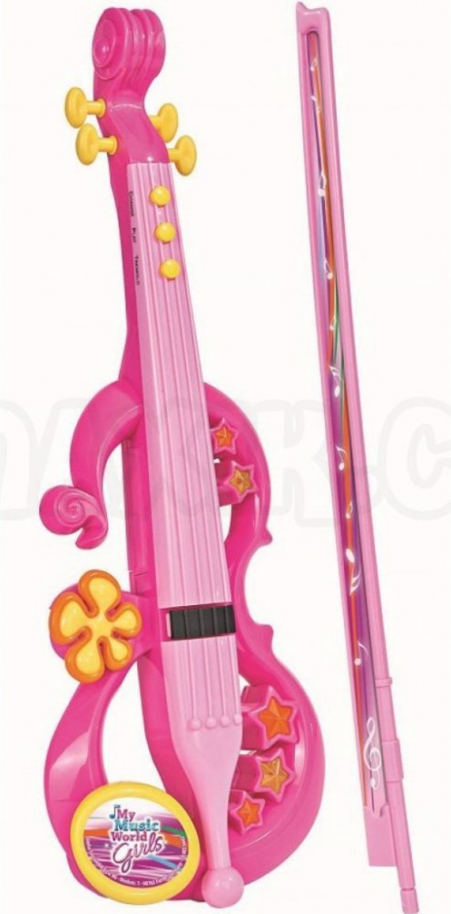 Elektronické dětské housle z platu v růžové barvě pro holčičky, pro všechny malé muzikanty a houslisty. Na houslích lze přehrát 8 melodií, nechybí ani tremolo efekt, cyklicky měnící se hlasitosti hraného tónu.