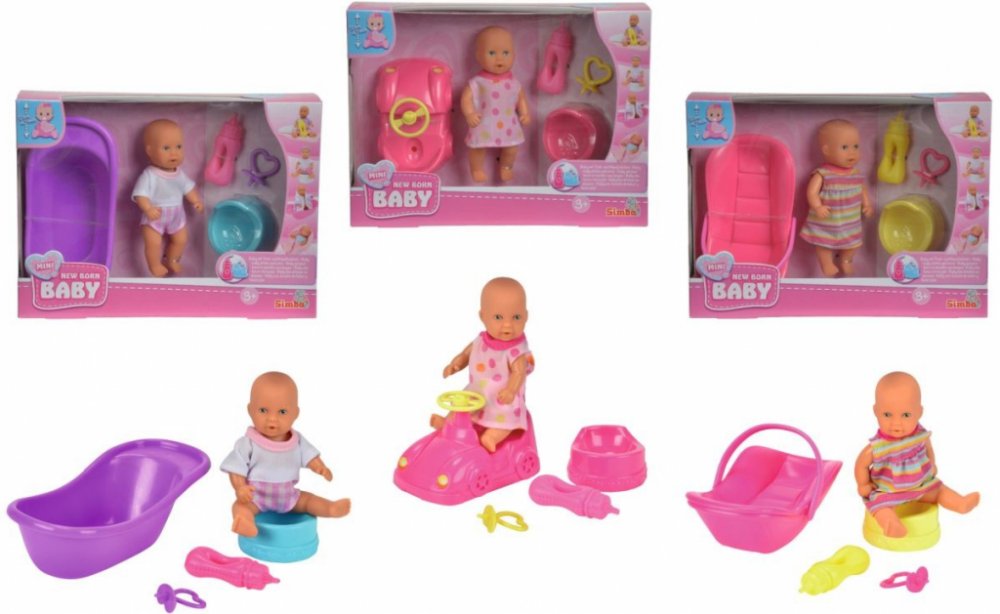 Simba New Born Baby Mini New Born 12 cm s příslušenstvím puntík