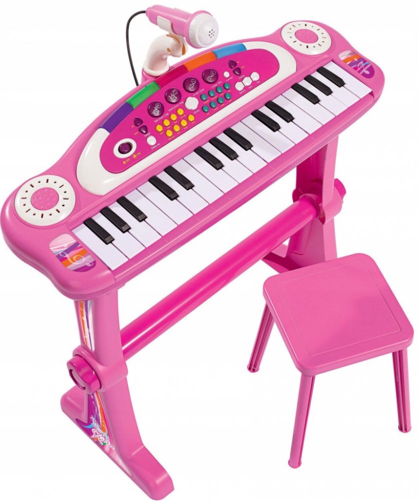 - Vedle rytmů a melodií má stojací klávesnice pro dívky také spínač On/Off spínač, regulaci hlasitosti, regulace tempo, cool zvířecí hlasy (pes, žába, kachna, pták) a funkci nahrávání a přehrávání