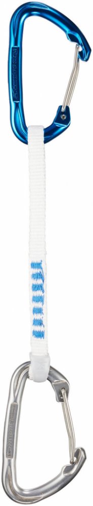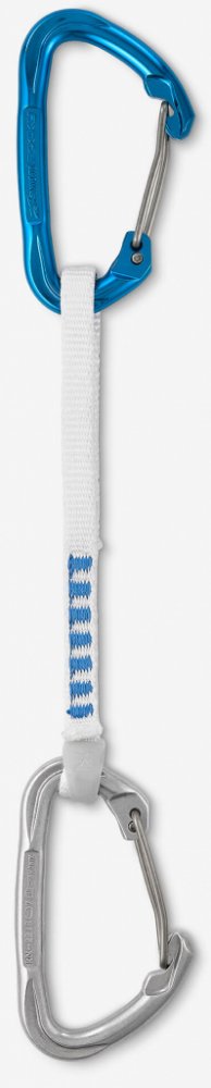 Díky tenkému popruhu a drátěné západce je karabina lehčí, ale přitom stále stejně odolná! Gumička udržuje karabinu v ose a usnadňuje připnutí lana.