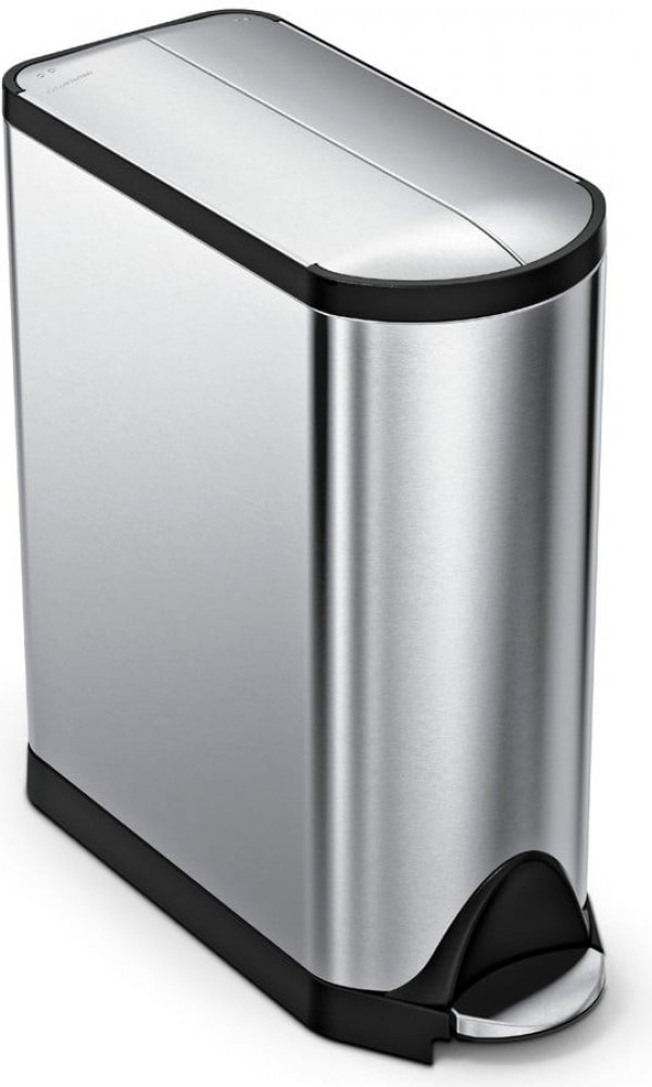 Silný pedál, tichý chod Nášlapný mechanismus pro otevírání koše je sestaven tak, aby vydržel až 150 000 šlápnutí, což je více než 20 sešlápnutí každý den pro dobu 20 let. Patentovaný mechanismus zavírání kontroluje a zaručuje plynulost pohybu víka a tiché zavření. Neviditelné okraje pytle na odpadky Vnější stranu víka je možné zvednout pro snadnou výměnu sáčku. Není nutné sejmout celý vršek koše. Až budete hotovy, jednoduše vrátíte víko zpět. Okraje sáčku zůstanou pečlivě zakryté a budou perfektně držet na svém místě. Vnitřní dávkovač na sáčky Díky integrovanému zásobníku na sáčky budete mít nový sáček vždy po ruce. Balení sáčků Simplehuman se přesně vejde do prostoru v koši. Sáček lze pohodlně vytáhnout jednou rukou, což významně urychluje výměnu pytlů. Povrchová úprava nano-stříbrem Povrch koše je ošetřený technologií, která ho pokryje jemnou vrstvou nano-stříbra. Díky tomu je chráněn před otisky prstů a choroboplodnými zárodky. Běžné nečistoty z koše stečou a pokud by se přeci jenom uchytily, jdou vždy snadno vyčistit. Vnitřní pant Díky vnitřnímu závěsu je zaručeno, že se víko otevře celé, ale nenarazí do zdi či nábytku umístěného za košem. 10 let záruka Simplehuman používá špičkové materiály, garantuje dlouholetou výdrž a pro tento model koše nabízí záruku 10 let. Padnoucí odpadkové pytle - M Simplehuman vyrábí vlastní odpadkové pytle. Vyznačují se vysokou pevností a snadno se z koše vyndávají. Sáčky, které přesně padnou do tohoto koše, najdete pod písmenkem M (45 l) Technické parametry koše: