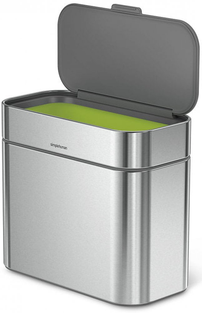 Jednoduché kompostování Koš na organický odpad z kuchyně je primárně určený k připevnění na klasické odpadkové koše Simplehuman, aby třídění bioodpadu bylo co nejefektivnější. Taktéž jej ale můžete volně položit přímo na kuchyňskou linku. Není magický, je magnetický Magnetická základna drží koš na kuchyňský bioodpad pevně na místě a je-li potřeba, udržuje víko v otevřené pozici pro pohodlné loupání zeleniny či ovoce. Snadné vynášení i údržba Odnímatelné víko umožňuje snadné vyjmutí vnitřní plastové nádoby, která se díky svému hladkému povrchu jednoduše vyprazdňuje a oplachuje. Nerez ocel s antibakteriálním povrchem Povrch odpadkového koše je opatřen neviditelnou vrstvou nano-stříbra, která chrání koš před otisky prstů a šířením choroboplodných zárodků. Stvořeno pro planetu Kompostovatelné odpadkové pytle s označením „Z“ jsou přímo určeny pro koše Simplehuman na organický odpad. Dokonale padnou do vnitřní nádoby a nevytvářejí ošklivý převis. Díky certifikátu o biologické rozložitelnosti lze pytle kompostovat spolu s bioodpadem. Balení obsahuje 30 náhradních „Z“ pytlů. Hygienické skladování Víko opatřené měkkým těsněním umožňuje organickému odpadu dýchat a zároveň zabraňuje úniku nepříjemných pachů (z banánových slupek atd.) Těsnění také brání vniknutí a množení škůdců jako jsou octomilky Volitelné umístění Koš na kuchyňský bioodpad lze diskrétně umístit také na vnitřní stranu dvířek u kuchyňské linky nebo na zeď. V tomto případě je ale nutné dokoupit držák na přivrtání, který není součástí balení. Samotný koš se na držák připevňuje přes magnetickou základnu, lze ho tedy jednoduše kdykoli odejmout a přemístit podle potřeby.
