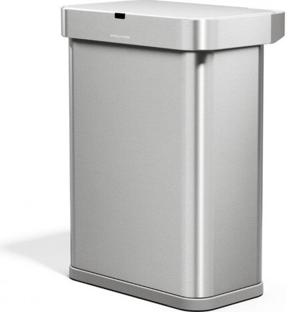 Ovládání hlasem nebo sensorem pohybu Infračervené pole snímá prostor nad a před košem tak, aby se automaticky otevřel pouhým mávnutím ruky. Když zrovna koš nepoužíváte, snímá čidlo jen prostor nad ním, aby se zbytečně neotvíral při každém pohybu v okolí. Jakmile ale koš otevřete, zabírá senzor i místo před košem, aby zůstal v pohotovosti tak dlouho, jak potřebujete. „Poslouchám tě“! Dávat povely nikdy nebylo jednodušší. Tři integrované mikrofony, které jsou rozmístěny do tvaru trojúhelníku, zajišťují přesné rozpoznávání hlasu i v rušném a hlasitém prostředí. Senzor zvuku reaguje na tři základní povely. Vyslovením „open can“se víko koše otevře a vy tak můžete pohodlně vyhodit vše co potřebujete, a to třeba i z dálky. Požadavkem „stay open“ zajistíte, aby koš zůstal otevřený a byl k dispozici po delší dobu. Víko koše se zavře až po vyslovení třetí „kouzelné“ formule „close can“ anebo automaticky po 10 minutách. „Silný a tichý“ Rychlý a hladký chod otevírání koše zajišťuje výkonný motor, který je dostatečně malý na to, aby dokonale splynul s elegantním designem koše a zároveň nebránil širokému otevření víka. Hlasitost motorku je pouhých 52 dB (což odpovídá hlasitosti lidského šepotu). To je až o 50 % tišší, než u konkurenčních bezdotykových košů. Revoluční zásobník na sáčky Díky vestavěnému zásobníku už nikdy nemusíte ztrácet čas hledáním náhradních sáčků do koše, budou totiž vždy při ruce. Z vnější strany koše jednoduše vložíte do zásobníku celé balení sáčků Simplehuman a z vnitřní strany je pak dle potřeby pohodlně odebíráte jednou rukou. Rychle a efektivně Pro snadnou výměnu sáčku není nutné sejmout celou horní část koše, stačí pouze zvednout krycí rám koše. Jedinečný systém rámu zajistí, že okraje sáčku zůstanou pečlivě zakryté a budou perfektně držet na svém místě. Elegantní vzhled koše tak zůstane nenarušený. Nemám rád bakterie! Povrch koše je odolný nejen proti otiskům, ale navíc je ošetřen také neviditelnou vrstvou s částicemi nano-stříbra, které ho chrání před množením nežádoucích mikroorganismů. Údržba koše je tak snadnější a hygieničtější. Odpadkové pytle na míru Simplehuman vyrábí pro jednotlivé modely košů dokonale padnoucí, extra silné pytle s dvojitými švy. Už nikdy žádné sklouznutí, prosakování nebo roztržení! Sáčky, které přesně padnou do tohoto koše, najdete pod písmenem „Q“(50-65 L), které je skryté také pod víkem koše. Napájení Součástí balení je adaptér do elektrické sítě. Koš lze také napájet pomocí 6xAA baterií (nejsou součástí balení). 5 let záruka Simplehuman používá špičkové materiály, garantuje dlouholetou výdrž a pro tento model koše nabízí záruku 5 let. Technické parametry koše: