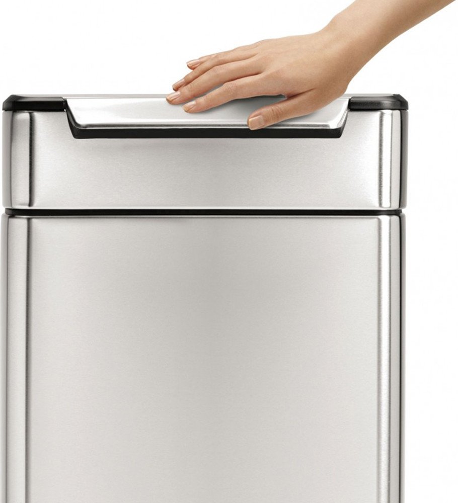 Odpadkový koš s dotykovým otvíránímdotykové madlo na víku stačí stisknout (i loktem, nohou) a koš se otevřevíko má tlumiče a pružiny, díky tomu na koši perfektně sedí a zůstává otevřené jak dlouho potřebujetepovrch koše má speciální ochranu proti otiskům prstůs vyjímatelnou vnitřní nádobouSpecifikacemateriál: ocelbarva: kartáčovaná nerez ocelobjem koše: 40 lhmotnost výrobku: 6,7 kgrozměr: 71 x 39,...