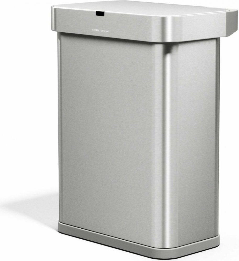 Bezdotykový odpadkový koš Simplehuman o objemu 58 l umožňuje hygienické a pohodlné vyhazování odpadků bez potřeby dotýkat se víka, čímž zabraňuje šíření bakterií a zjednoduší práci s odpadem. Pro pohodlné a nerušivé používání je vybaven tichým zavíráním víka. Antibakteriální úprava účinně blokuje výskyt a šíření mikroorganismů. Je navržen tak, aby se dal umístit kamkoliv. Hlavní přednosti produktu Simplehuman Sensor bezdotykový odpadkový koš s hlasovým ovládáním 58 l, nerezová ocel Bezdotykový odpadkový koš Simplehuman o objemu 58 l přispívá k hygienicky bezpečnému zacházení s odpadem Systém tichého zavírání víka Jeho antibakteriální úprava brání výskytu mikroorganismů Volně stojící Nabízí jednu nádobu Jeho rozměry jsou 6,3 × 4,7 × 3,3 cm (vך×h) K provozu je potřeba zakoupit 6 AA baterií Barva koše je stříbrná Materiál: nerez