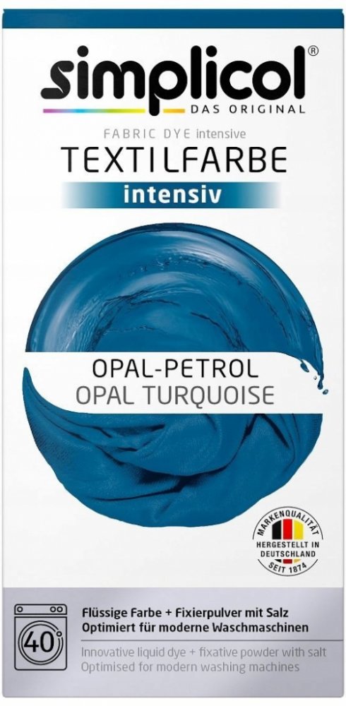 Simplicol Opal-Petrol je určen k barvení bavlny, lnu, viskózy a smíšených tkanin (až 50 % umělých vláken). Jedno balení vystačí na trvalé zbarvení přibližně 600 g bílého materiálu a dodá mu hlubokou, intenzivní barvu.