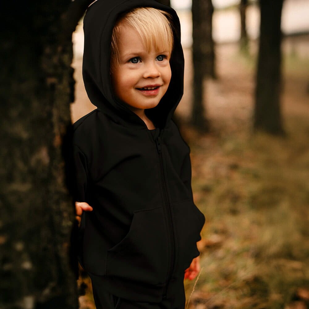Černá mikina s kapucí a zipem – kolekce Simply ComfyPraktická a stylová dětská mikina vyrobená ze 100% měkké a prodyšné bavlny. Vyniká elegantní černou barvou, pohodlným střihem a funkční kapucí. Zapínání na zip usnadňuje oblékání a svlékání, ideální pro každodenní aktivity – do školy, školky nebo na procházky – poskytuje volnost pohybu a pohodlí po celý den. Proč si vybrat mikiny s kapucí od Eevi? • 100% bavlna – přírodní, měkký a příjemný materiál • Praktický zip – snadné oblékání a svlékání • Funkční kapuce – chrání před větrem a chladem • Precizní detaily – hladké švy, pružné lemy a kvalitní zpracování • 100% polský výrobek – vysoká kvalita a dlouhá životnost Vlastnosti produktu: • Věk dítěte: přibližně 1,5–10 let • Velikosti: 86–140 • Kolekce: Simply Comfy • Barva: černá • Materiál: 100% bavlna • Druh materiálu: měkká a pružná teplákovina • Střih / zakončení: klasický střih, zip vpředu, kapuce, žebrované lemy na rukávech a spodním okraji • Původ: 100% polský výrobek Certifikáty: • „Bezpečné pro děti“ • „Bezpečné pro kojence“
