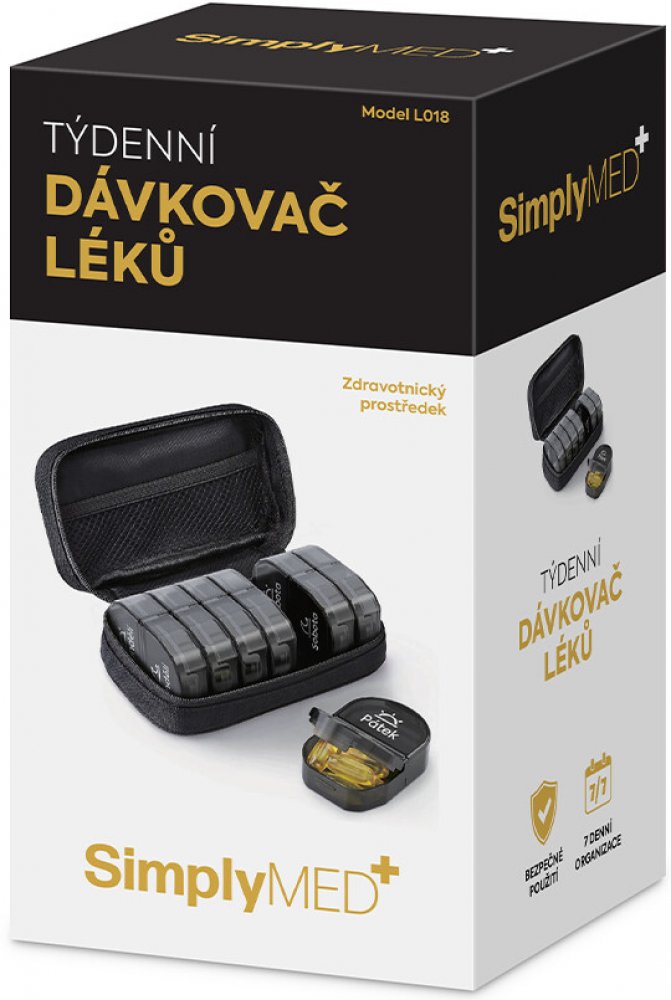 Kompaktní minimalistický dávkovač léků L018 se uplatní zejména na cestách. Nezabírá zbytečně místo, obal se ani při častějším přesouvání nepoškrábe. Tento praktický organizér je totiž uložen v elegantním textilním pouzdře. Za zipem se skrývají kazety na jednotlivé dny v týdnu. Každá kazeta je dělena na dvě přihrádky, které umožňují naplánování dávkování léků dvakrát denně. Jednotlivé, dnem v týdnu...