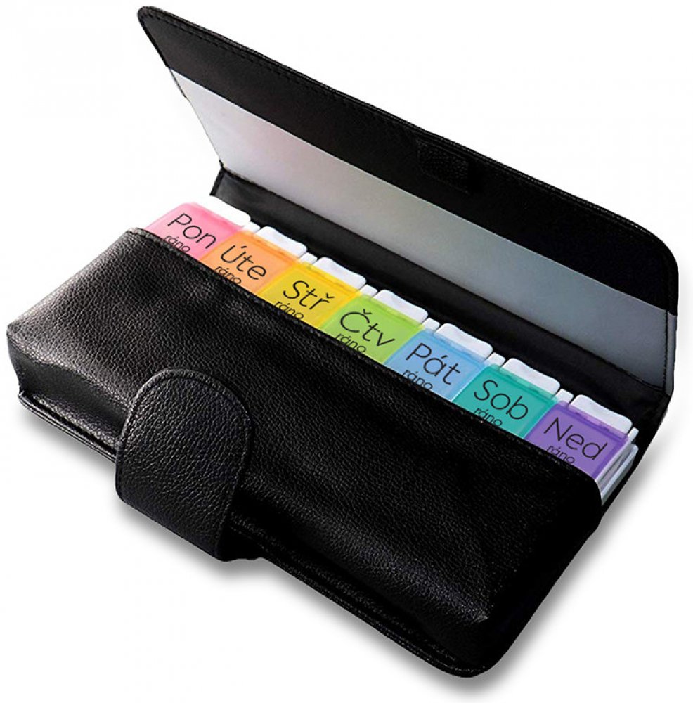 SimplyMed Dávkovač léků YHL015 je kompaktní a elegantní řešení pro týdenní organizaci léků. Dávkovač se vyznačuje koženkovým pouzdrem, které je ideální na cesty a je odolné vůči poškrábání i při častějším přesouvání. Tento stylový organizér obsahuje denní kazety s dvěma přihrádkami, které umožňují snadné dávkování léků ráno a večer. Každá přihrádka se otevírá samostatně, což zajišťuje bezpečné a p...
