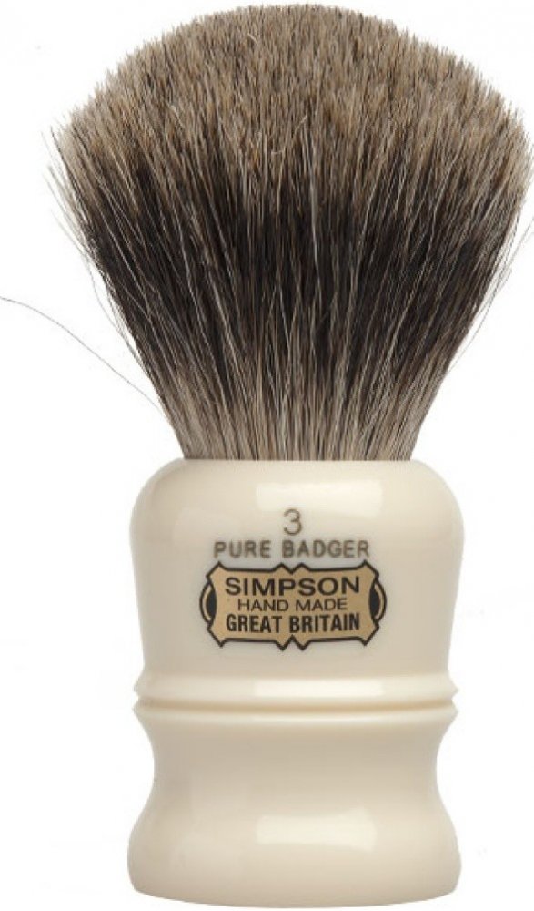 Ručně vyráběná štětka na holení značky Simpson s jemnými štětinami z jezevce s vysokou hustotou.Firma Simpson se specializuje především na výrobu vysoce kvalitních holících štětek a to již od roku 1919.Typ štětin Pure Badger – štětiny obsažené na 60% těla jezevce, obzvláště z partií břicha. Obvykle bývají tmavé barvy, avšak mohou být i světle hnědé až skoro černé. Jsou hrubší než typy Best badger a silvertip.Celková výška 95 mm.Délka štětin 48 mm.Výška a průměr rukojeti 47 x 36 mm.Průměr uzlu 23 mm.Nejširší horní průměr svazku štětin 43 mm – po prvním použití se štětiny více rozevřou.Vyrobeno v Anglii.Pro udržení štětky ve skvělé kondici a prodloužení její životnosti doporučujeme používat stojánek na štětku, díky kterému odkape všechna voda, čímž se zamezí hnilobě a následnému vypadání štětin.Nejste si jisti výběrem správné štětky? Pokusíme se vám napovědět v tomto článku.- štětku před použitím na chvíli ponořte do teplé, nikoli horké či vařící, vody. Nasákne tak vlhkost, díky níž se bude pěna mnohem lépe tvořit.- každá nová štětka pouští povolené štětiny, nejedná se však o závadu- při šlehání na štětku netlačte, pouze jemně míchejte- po použití štětku jemně vyždímejte a vytřepte přebytečnou vodu. Pro důkladnější vysušení můžete štětku jemně přetřít po suchém ručníku.- štětku nechte oschnout ve stojánku na místě, kde proudí vzduch (nezavírejte jí do skříňky)