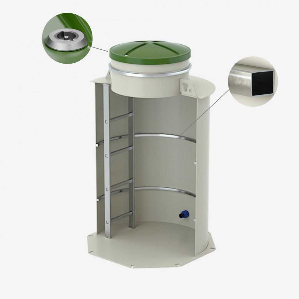 Unikátní konstrukce pláště ze 100% vodonepropustného plastu a s výztuhami z nerezové oceli pro zajištění potřebné únosnosti je vyrobena výhradně z nejlepších materiálů 1. jakosti, což jej odlišuje od většiny vodoměrných šachet na trhu.