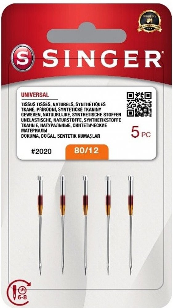 Značkové jehly Singer univerzální pro domácí šicí stroje SINGER, jehla s ploškou, jednodruhové balení po 5 kusech, síla jehly je 80/12, značení 130/705 H. Tyto jehly můžete použít i na modely strojů Janome, LIDL-Silvercrest, Brother, Lada, Veronica, Bernina, Juki, Lucznik, Veritas, Pfaff, Husqvarna Viking, Texi, Minerva, Redstar, Toyota, AEG, atd. Vhodné pro stroje SINGER: MA, MB, MC, CA, CB, CC, CE, EA, EB, EC Povrch jehly je zinkovaný. Hrot jehly je zakulacený a ostrý, aby procházel tkaninou a nenařezával vlákna. Jehly jsou vhodné pro základní stehy a některé dekorativní stehy, např. saténové. Síla jehly 80/12 značí jehlu určenou pro středně silné materiály jako je např. látka na deštníky, mušelín, ložní prádlo, vlněný krep . Vhodné nitě jsou polyester opředený bavlnou/100% polyester/macerované/silon, velikost 50. Spodní a horní nit by měly být stejného typu a síly. Pro běžné domácí šití jsou jehly velkostí 80/12 a 90/14 nejčastěji používané. Při šití speciálních materiálů, jako je např. úplety, jersey, denim, kůže/koženka, mikrotextilie doporučujeme použít pro nejlepší výsledek speciální jehly pro tyto materiály.Pro maximální výkon doporučuje společnost SINGER měnit jehlu každých 6-8 hodin šití. TIP: Značkové SINGER jehly pro klasické domácí šicí a vyšívací stroje nejsou zaměnitelné s jehlami pro overlock. Rozdílný design obalu SINGER nemá na kvalitu či původ výrobku jakýkoliv vliv. Pro maximální výkon doporučuje společnost SINGER měnit jehlu každých 6-8 hodin šití.